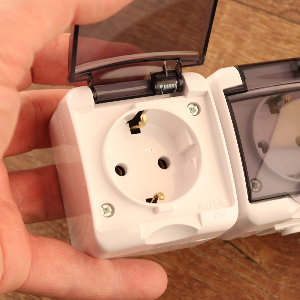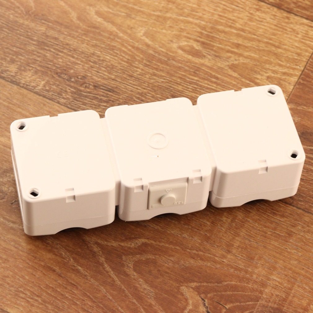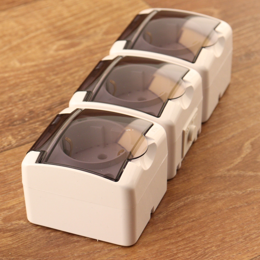 GAO Aquastar priză triplă împământată cu capac transparent pentru pini IP54 poate fi instalată fără nicio pregătire datorită designului său de ieșire din perete, iar designul său rezistent la stropire o face potrivită atât pentru utilizarea în interior, cât și în exterior.