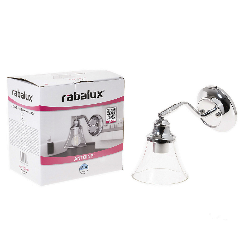 Lampa de perete pentru baie Antoine Rábalux 3207 cu capac din sticlă este o soluție de iluminat funcțională, concepută special pentru utilizarea în baie. Lampa este fabricată din metal și sticlă, cu o schemă de culori cromată și transparentă, care îi conferă un aspect modern. Are o priză E14 și funcționează cu o sursă de lumină înlocuibilă, care nu este inclusă. Produsul are un grad de protecție IP44, ceea ce îl face rezistent la stropirea cu apă și potrivit pentru utilizarea în încăperi umede. Dimensiuni: 210 mm lungime, 110 mm lățime și 130 mm înălțime, greutate 0,44 kg. Lampa de perete nu este reglabilă, temperatura culorii, fluxul luminos și puterea depind de sursa de lumină selectată. Dimensiunile ambalajului sunt 13x16x18 cm. Producătorul este Rábalux.