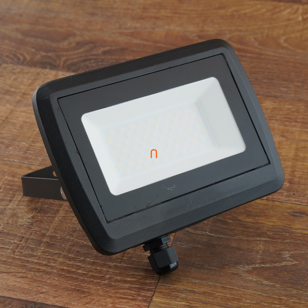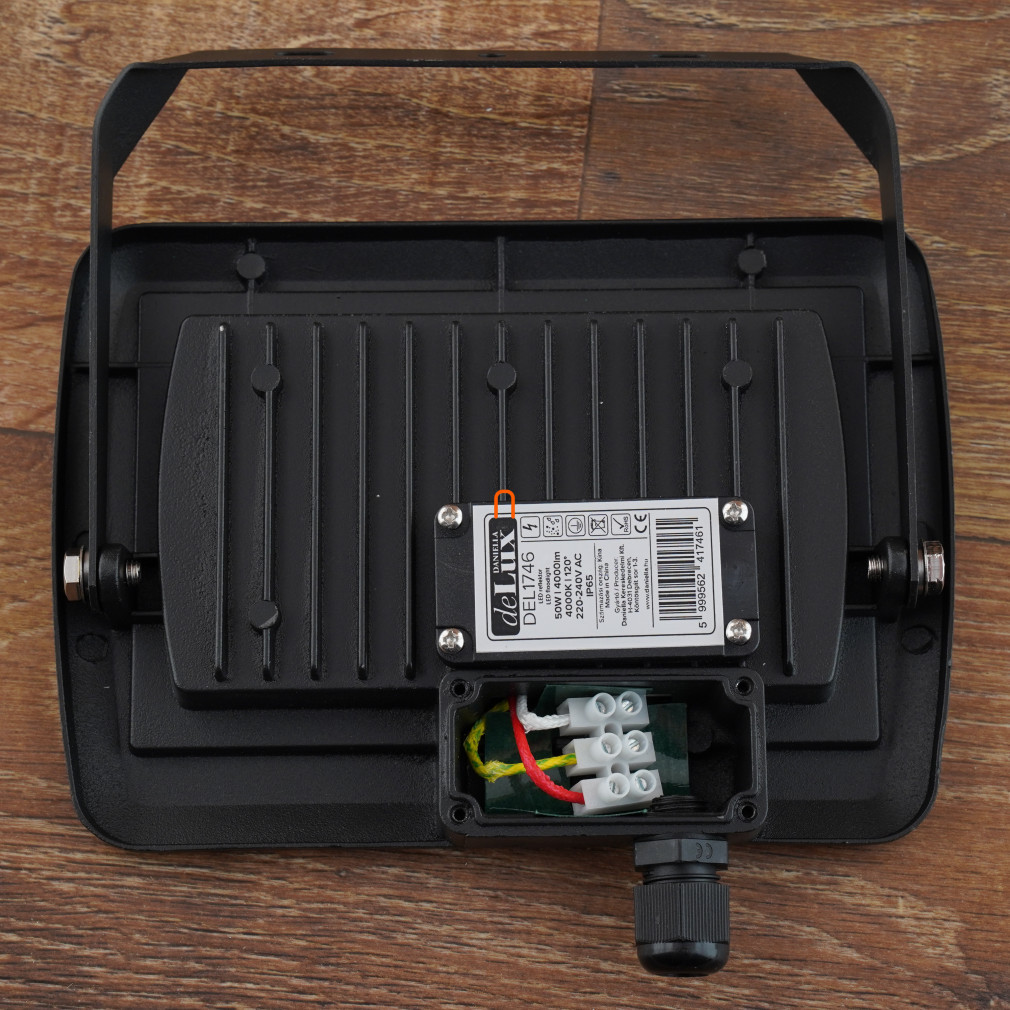 DEL1746 LED reflector 50W cu clemă, difuzor 4000K 1600lm IP65 120 grade SMD, plat, negru deluxe