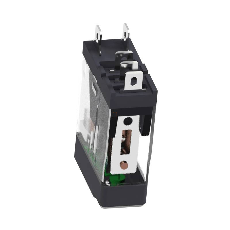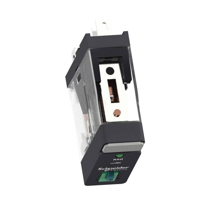 Această priză de releu plug-in Zelio RXG are o tensiune de control a bobinei de 48 V c.c. și 1 contact de comutare SPDT (unipolar, dublu aruncător) cu o valoare nominală de 10 A. Are un număr mare de contacte pentru aplicații cu curent nominal ridicat. De asemenea, oferă un buton de testare blocabil și un afișaj LED. Ajută la reducerea dimensiunilor dulapurilor și la creșterea fiabilității mașinilor: datorită lățimii sale de 16 mm, poate fi instalat aproape oriunde. Compatibilă cu sistemele de automatizare logică cu fir pentru a completa funcțiile controlerelor logice programabile industriale (PLC). Indicator de stare LED: vizibil atât ziua, cât și noaptea.