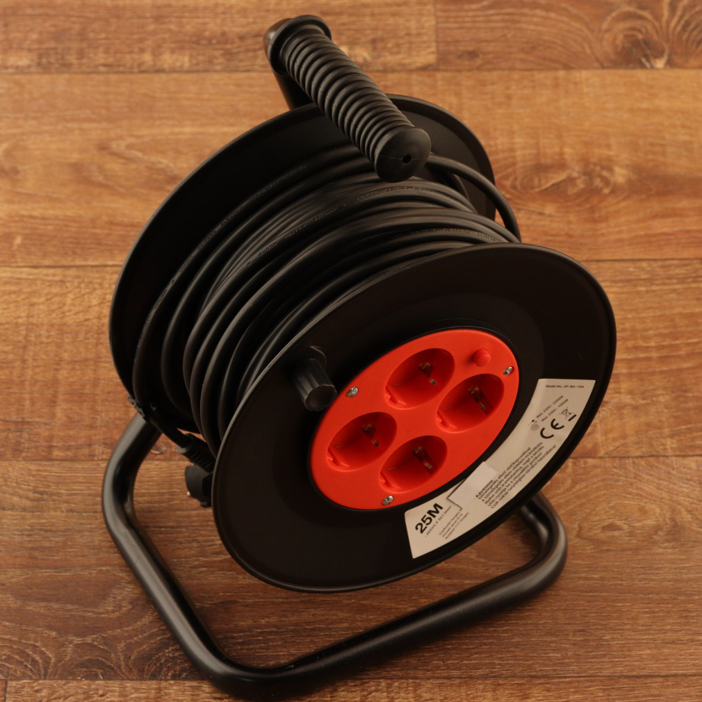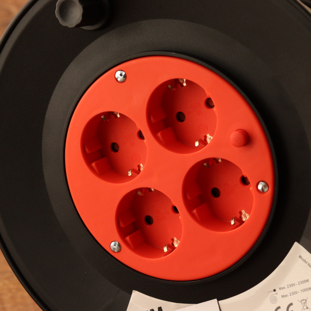 Rolă de cablu cu 4 prize, 25 metri, negru/roșu