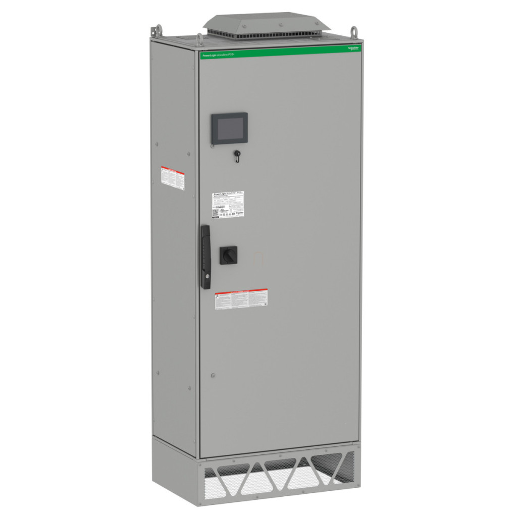 Filtru armonic activ AccuSine PCS+ 380-480 V 60 A IN2 PCSP060D5N2 Schneider>Acest hardware este soluția activă de corecție a puterii din familia AccuSine, care ajută la stabilizarea rețelelor electrice prin atenuarea armonicelor, corecția factorului de putere și partajarea sarcinii. Este proiectat special pentru condiții electrice dificile și aplicații industriale grele, inclusiv medii critice. Această versiune este de tip UL 2 și poate fi conectată la rețele de joasă tensiune nominală de 380-480 volți. Este clasificată pentru un curent de ieșire standard Root Mean Square de 60 amperi. Carcasa este de tip podea și poate fi introdusă de sus sau de jos, fiind disponibilă în culoarea gri deschis RAL7035. Acest filtru de putere activă depășește standardele, cu un THDi de până la 3%, și este certificat CE, UL, IBC 2015 AC156, EAC și RCM. Este proiectat în conformitate cu IEC 62477-1, IEC 61000-6-2, IEC 61000-6-4, IEC 61439-1, UL508 și IEEE 519-2014. Se pot conecta în paralel până la 10 unități cu puteri nominale diferite, permițând o compensare maximă de 3000 A per set CT. Dimensiunile externe ale cadrului sunt: lățime 800 milimetri, adâncime 500 milimetri, înălțime 2100 milimetri, iar produsul cântărește 277 kg.