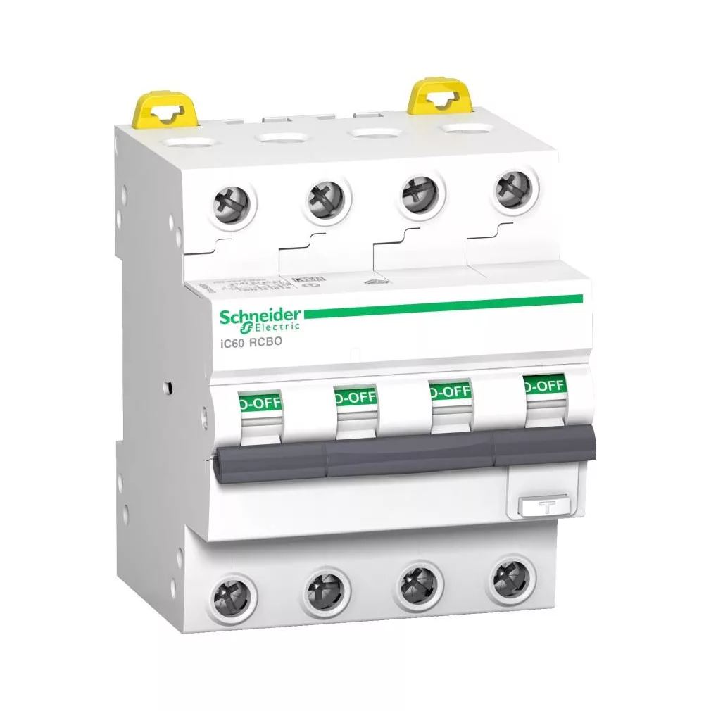 ACTI9 iC60 întrerupător de curent rezidual, 6 kA, clasa SI, 4P, C, 16 A, 30 mA. Familie de produse: Acti 9 - tip de produs sau componentă: întrerupător diferențial - denumire scurtă a dispozitivului: iC60 RCBO - aplicație dispozitiv: distribuție - tip rețea: CA - tehnologie unitate de declanșare: termomagnetică - întârziere protecție împotriva scurgerilor la pământ: instantanee - clasa de protecție împotriva curentului de scurgere: tip A-SI - capacitate de rupere: Icn 6000 A -380...415 V AC 50 Hz conform cu EN/IEC 61009-2-1, Icu 6 kA -380...415 V CA 50 Hz conform cu EN/IEC 60947-2 - etichete de calitate: IMQ, KEMA-KEUR, NF, VDE.
