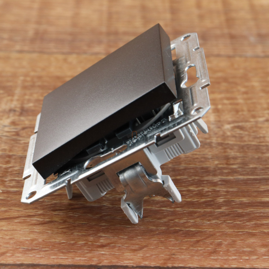 ASFORA Comutator bipolar, conexiune cu arc, antracit (102). Familie de produse: Asfora - Tip ambalaj: flow-pack. Avantaje: Ruptura cu tradiția și convențiile, utilizarea accesoriilor colorate pentru diverse funcții de iluminat și confort., Comandă rulou, Comutator cu indicator luminos, Dimmer. Datorită gamei largi de conectori, nu veți pierde nimic și vă veți putea bucura cu adevărat de timpul liber, deoarece există numeroase funcții pentru confortul dvs.: priză TV/R/SAT, conector de date RJ45, conector pentru difuzoare. Pe lângă faptul că adaugă stil casei dvs. cu liniile lor elegante, produsele Asfora sunt conforme cu standardele actuale și sunt fabricate din materiale solide și durabile. Priză cu capac, priză IP44. Aplicații: Clădiri rezidențiale, birouri și clădiri comunitare.