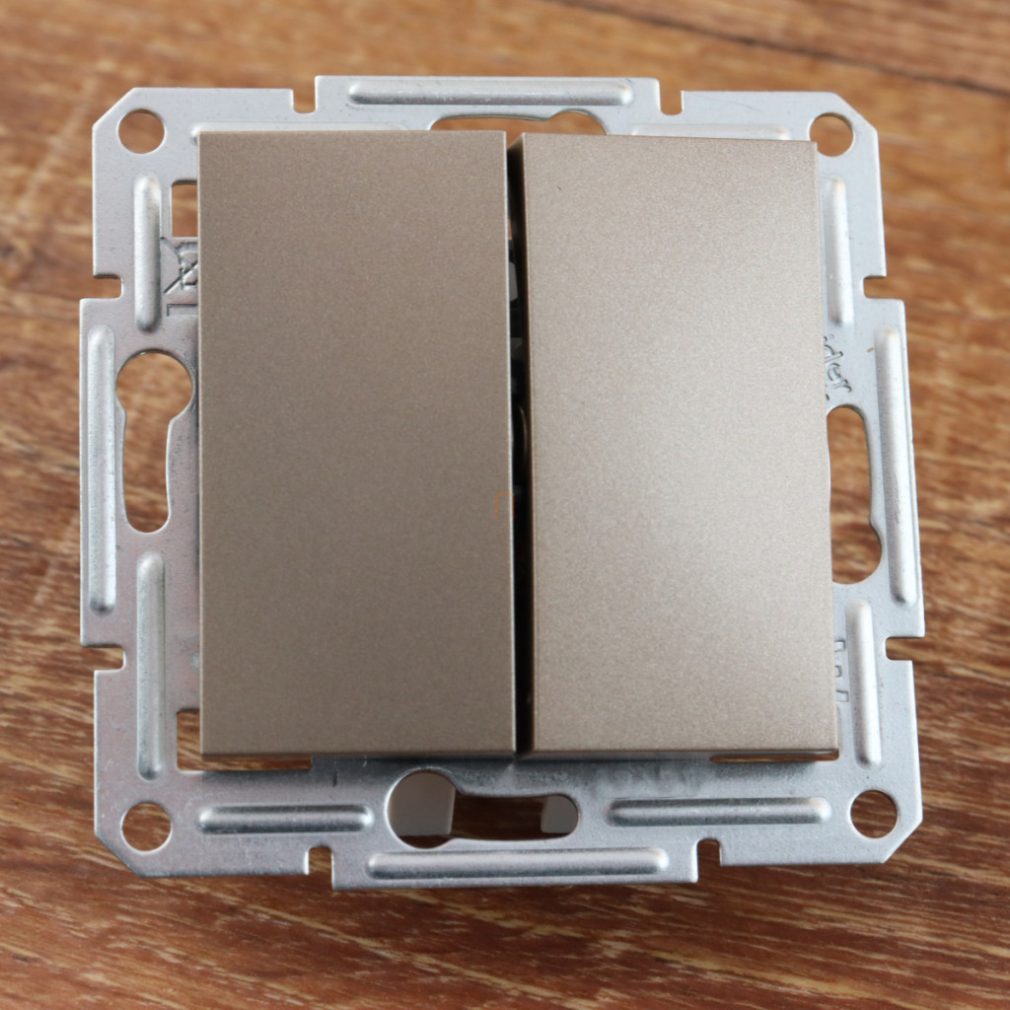 Comutator pentru candelabru ASFORA, conexiune cu arc, bronz (105) EPH0300169 Schneider Comutator pentru candelabru ASFORA, conexiune cu arc, bronz (105). Familie de produse: Asfora - Tip ambalaj: flow-pack. Avantaje: Rupeți cu tradiția și obiceiurile, utilizați accesorii colorate pentru diferite funcții de iluminat și confort., Comandă obturator, Comutator cu indicator luminos, Dimmer. Datorită gamei largi de conectori, nu veți pierde nimic și vă veți putea bucura cu adevărat de timpul liber, deoarece există numeroase funcții pentru confortul dvs.: priză TV/R/SAT, conector de date RJ45, conector pentru difuzoare. Pe lângă faptul că adaugă stil casei dvs. cu liniile lor elegante, produsele Asfora sunt conforme cu standardele actuale și sunt fabricate din materiale solide și durabile. Priză cu capac, priză IP44. Aplicații: Clădiri rezidențiale, birouri și clădiri comunitare.