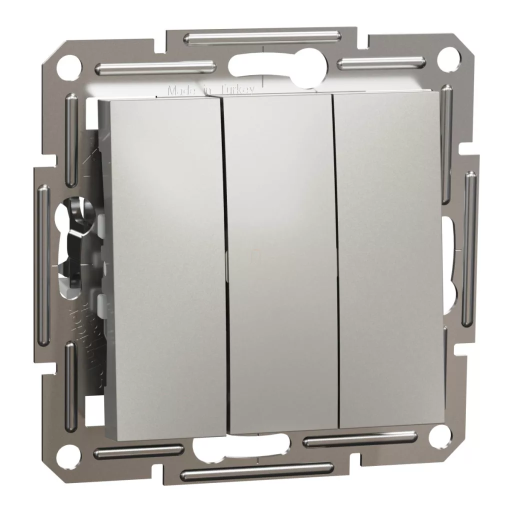 Comutator triplu ASFORA din bronz EPH2100169 SchneiderComutatorul Schneider Electric Asfora EPH2100169 este un produs complet, de culoare bronz, cu 3 comutatoare basculante. Este un comutator unipolar, unidirecțional. Lățimea, înălțimea și adâncimea acestuia sunt de 83 mm, 43 mm și 83 mm. Cutia dispozitivului poate fi încastrată în suprafață pentru montare la nivel. Suprafața are un finisaj lucios, care conferă încăperii un aspect elegant și de înaltă calitate. Dispozitivul are un grad de protecție IP20. Comutatorul este destul de durabil. În plus, este un produs ecologic premium care vă protejează întotdeauna familia. Comutatoarele Asfora actualizate au acum inserții mai mici și mai compacte, un cadru de montare profilat, butoane de intrare și eliberare a cablului îmbunătățite, brațe largi și profilate și un arc de revenire, îmbunătățind calitatea și funcționalitatea comutatorului. Produsele Asfora sunt fabricate din materiale de înaltă calitate, care nu se îngălbenesc în timp. Designul subțire și elegant se armonizează perfect cu aproape orice interior.