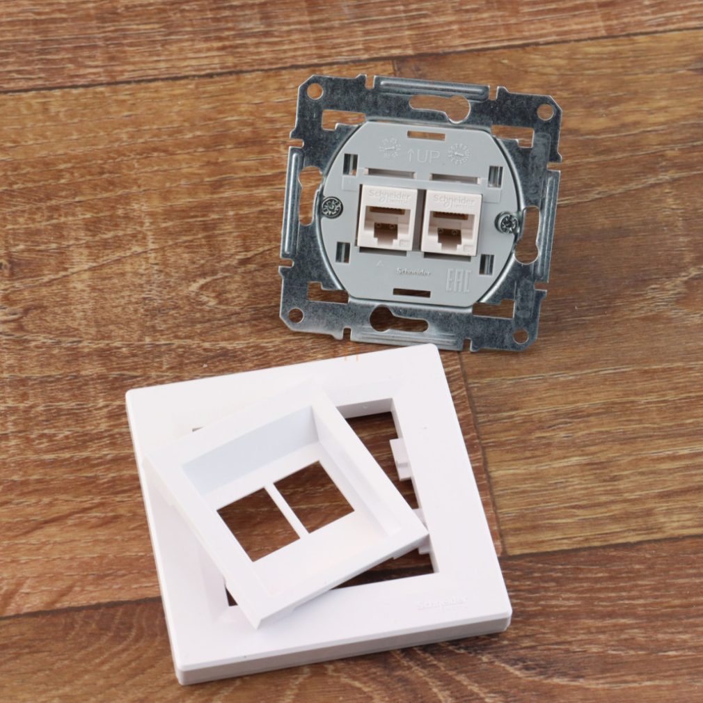 Priză ASFORA 2xRJ45 Cat5e UTP, cu ramă, albă EPH4400121 Schneider