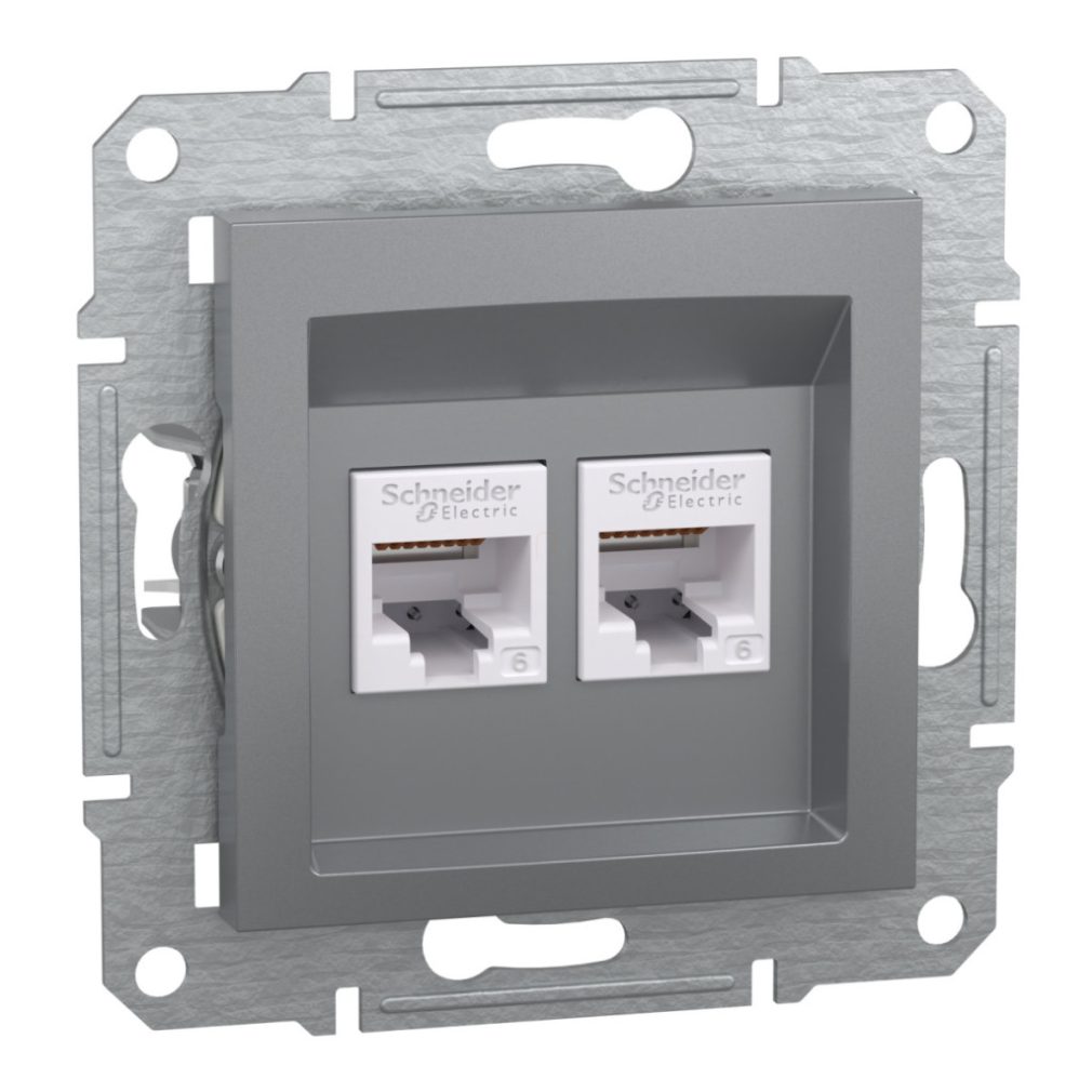 Schneider Electric Asfora - EPH4800162 - Priză 2xRJ45 Cat6 UTP, oțel