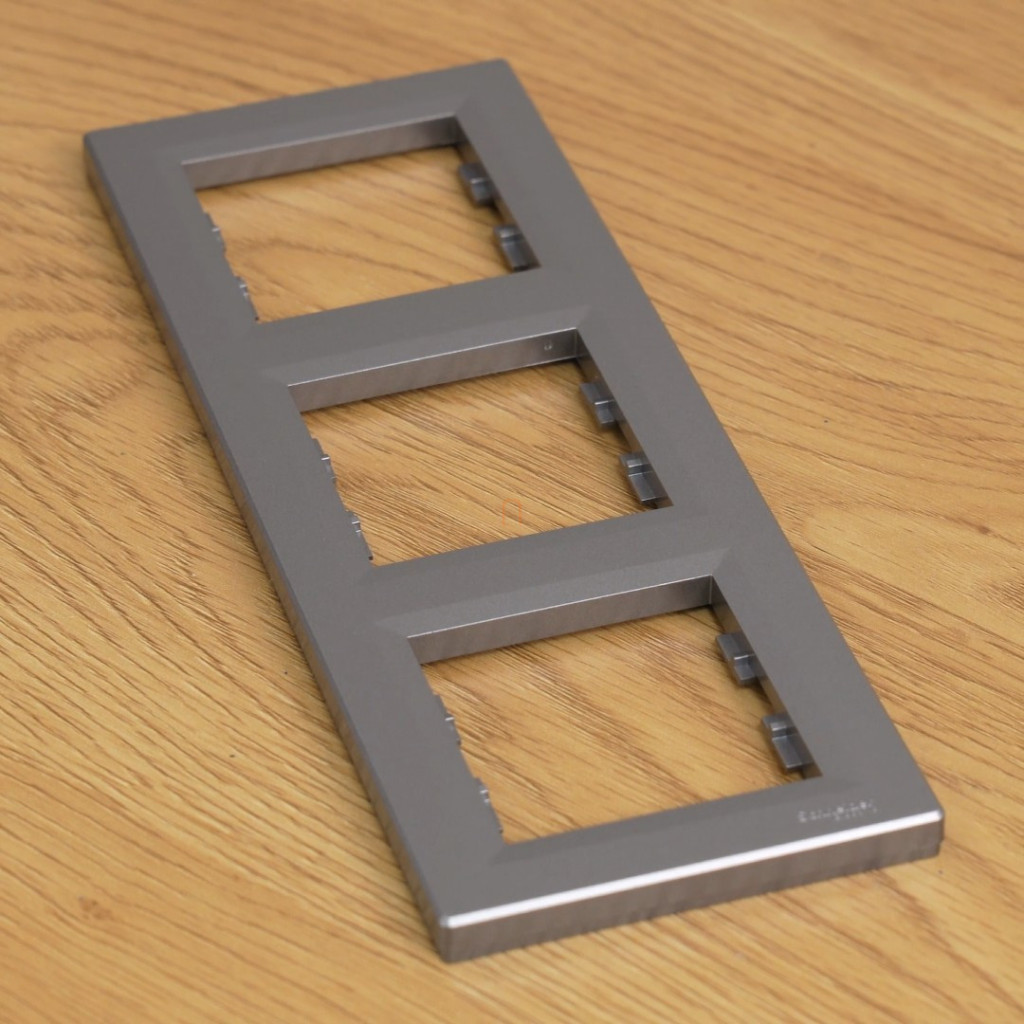 Rama verticală triplă de montare EPH5810362 din gama de produse Schneider Electric Asfora este o alegere excelentă pentru cei care caută accesorii electrice moderne și elegante pentru casa sau biroul lor. Acest cadru vertical, de culoare oțel, se potrivește perfect cu celelalte elemente din gama de produse Schneider Electric Asfora, asigurând un aspect uniform pentru întregul sistem electric. Cadrul triplu cu numărul de cod EPH5810362 este fabricat din material ABS (acrilonitril butadien stiren) de înaltă calitate, care asigură durabilitate și un aspect estetic. Suprafața de culoare oțel, cu efect metalic, conferă produsului un aspect elegant, iar finisajul lucios, metalizat, sporește și mai mult senzația de calitate superioară. Cu o înălțime de 225 mm, o lățime de 71 mm și o adâncime de numai 9 mm, rama se integrează armonios în suprafața peretelui, fără a crea proeminențe care să distragă atenția în spațiu. Rama de montare Schneider Electric Asfora EPH5810362 este ușor de instalat datorită tehnologiei de montare cu cleme, nefiind necesare unelte speciale sau cunoștințe de specialitate. Gradul de protecție IP20 al produsului îndeplinește cerințele pentru aplicații interioare, în timp ce gradul de rezistență la impact IK02 oferă o protecție adecvată împotriva impacturilor mecanice care apar în timpul utilizării zilnice. Dispunerea verticală este deosebit de practică în locurile în care spațiul orizontal pe perete este limitat, cum ar fi lângă uși sau în coridoare înguste, unde trebuie amplasate trei întrerupătoare sau prize unul deasupra celuilalt.