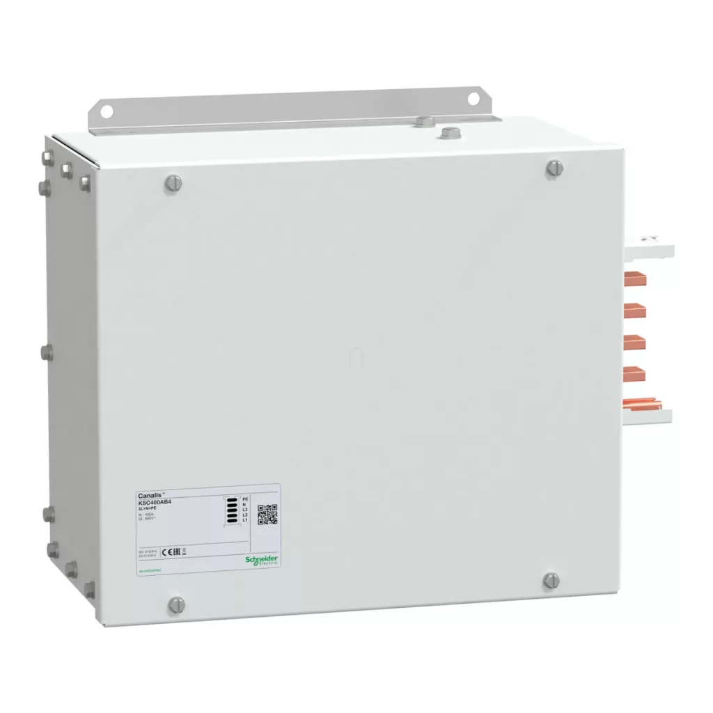 Bloc terminal 250 A stânga/dreapta KSC250AB4 Schneider Bloc terminal 250 A stânga/dreapta. Familie de produse: Canalis - Denumire produs: KS - Tip produs sau componentă: Sursă de alimentare - Material: Cupru - Curent nominal de funcționare: 100 A, 160 A, 250 A. Avantaje: Design modular și sistem extensibil Instalare și punere în funcțiune rapidă și ușoară Flexibilitate: unitățile de ramificație ale consumatorilor sunt amplasate acolo unde este necesar și pot fi instalate fără a întrerupe circuitul, chiar și sub tensiune Ușor și ușor de manevrat Suprafețe de contact excelente: durată lungă de viață Design ușor și robust Design fără halogeni: în caz de incendiu, Canalis nu emite fum sau gaze toxice Nivel ridicat de protecție: IP 55 pentru toate tipurile de clădiri. Aplicații: Cutiile de ramificație pot fi conectate și deconectate în siguranță de la canalul de distribuție (blocare de siguranță și deconectare).