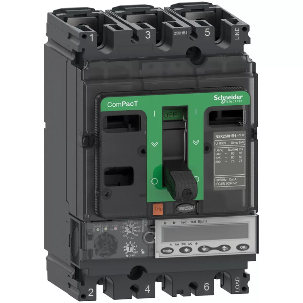 Schneider Electric ComPacT NSX (2021) - C25W36E250 - Întrerupător NSX250HB2, 100 kA 690 VAC, unitate de eliberare MicroLogic 6.2 E 250 A, 3P3d date tehnice