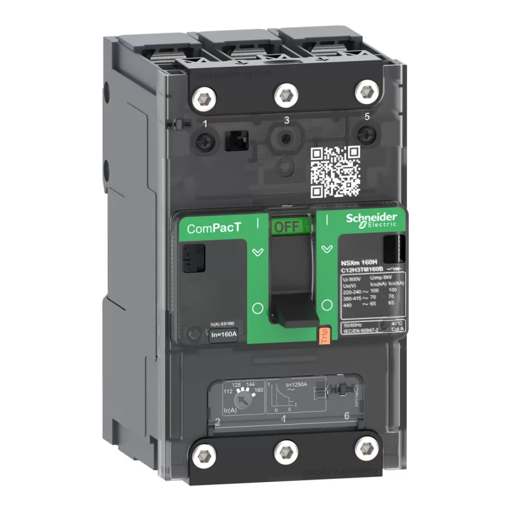 Acesta este un întrerupător cu carcasă turnată ComPacT NSXm, 40A, 50kA, 415VAC, pentru toate aplicațiile standard de joasă tensiune. Oferă caracteristici noi, precum tehnologia Everlink și opțiuni de montare pe șină DIN și placă. Încorporează noi dispozitive auxiliare cu arc, vizibile din exterior. ComPacT NSXm este unul dintre cele mai mici MCCB-uri de pe piață, cu dimensiuni de 81 mm (lățime) x 137 mm (înălțime) x 80 mm (adâncime). Este o versiune cu 3 poli, cu unitate de declanșare termomagnetică încorporată. Asigură conformitatea cu standardele internaționale (IEC 60947/CCC/EAC) și cu reglementările maritime.