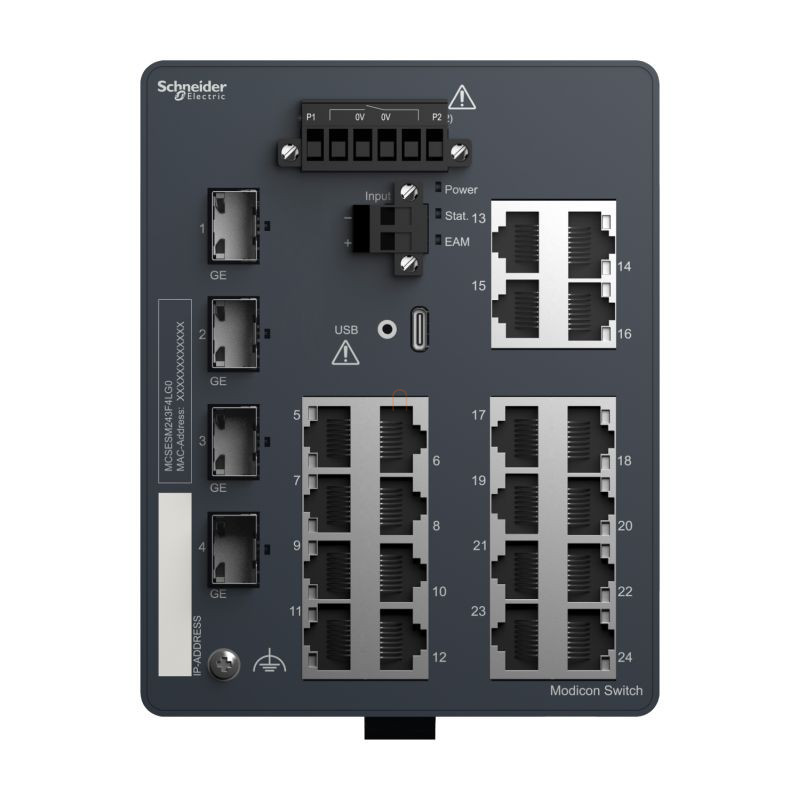 Schneider Electric ConneXium - Ethernet - MCSESM243F4LG0 - Comutator gestionat Modicon, 20 porturi + 4 Gigabit SFP