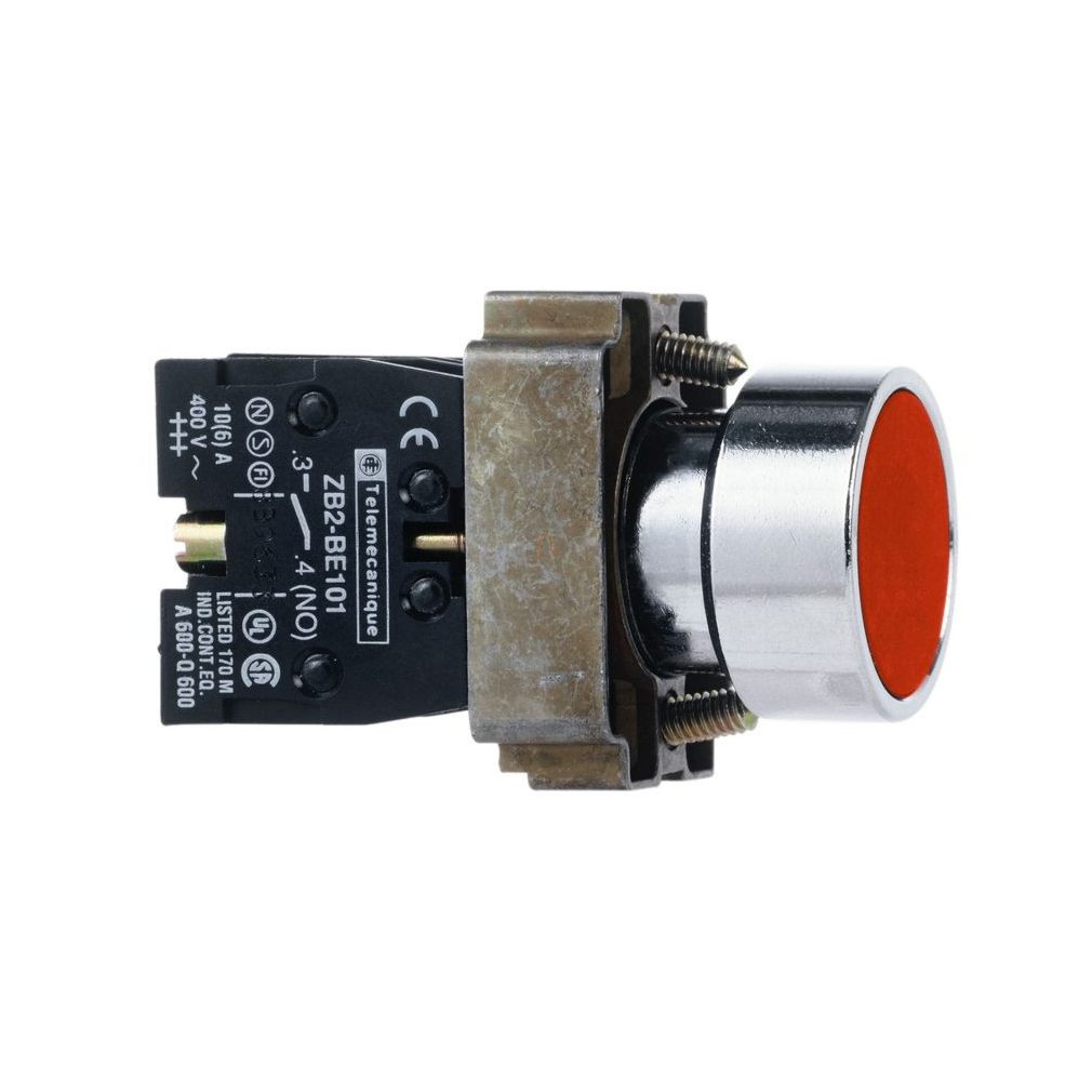 Schneider Electric Easy Harmony XB2 - XB2BA42C - Buton apăsat, roșu, 1 NC, metal, montare încastrată, 22 mm, revenire cu arc, nemarcat
