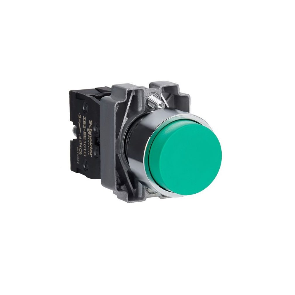 Schneider Electric Easy Harmony XB2 - XB2BL31C - Buton apăsat, ridicat, verde, 1 NO, metal, 22 mm, retur, nemarcat
