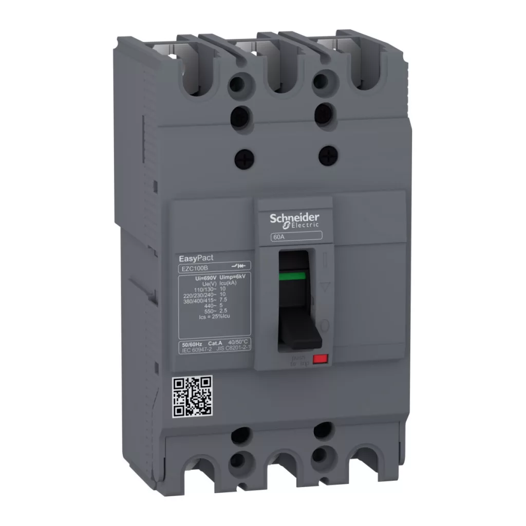 \nEZC100B 3p 7,5 kA/400 V întrerupător de circuit 25 A. Familie de produse: EasyPact - tip produs sau componentă: întrerupător - denumire scurtă dispozitiv: Easypact EZC100B - denumire întrerupător: Easypact EZC100B - aplicație dispozitiv: distribuție - descriere poli protejați: 3t - tip rețea: CA, CC - frecvență rețea: 50/60 Hz - cod valori nominale întrerupător: B - capacitate de întrerupere: 10 kA Icu -110...130 V AC 50/60 Hz conform cu IEC 60947-2, 10 kA Icu -220...240 V AC 50/60 Hz conform cu IEC 60947-2, 2,5 kA Icu -550 V AC 50/60 Hz conform cu IEC 60947-2, 5 kA Icu -440 V c.a. 50/60 Hz conform cu IEC 60947-2, 7,5 kA Icu -380 V c.a. 50/60 Hz conform cu IEC 60947-2, 7,5 kA Icu -400...415 V CA 50/60 Hz este conform cu IEC 60947-2 - Capacitate nominală de rupere Ics: Ics 0,625 kA 550 V CA 50/60 Hz este conform cu IEC 60947-2, Ics 1,25 kA 440 V c.a. 50/60 Hz este conform cu IEC 60947-2, Ics 1,875 kA 380 V c.a. 50/60 Hz este conform cu IEC 60947-2, Ics 1,875 kA 400/415 V CA 50/60 Hz este conform cu IEC 60947-2, Ics 2,5 kA 110/130 V CA 50/60 Hz este conform cu IEC 60947-2, Ics 2,5 kA 220/230/240 V c.a. 50/60 Hz este conform cu IEC 60947-2 - categorie de utilizare: Categoria A - denumirea unității de declanșare: TM-D - tehnologia unității de declanșare: termomagnetică - tipul de protecție: protecție la scurtcircuit, protecție la scurtcircuit - grad de poluare: 3 conform IEC 60664-1, 3 conform IEC 947-1. Avantaje: Cu soluția lor simplă și 3 dimensiuni fizice, întrerupătoarele Easypact oferă un răspuns simplu la protecția rețelelor de joasă tensiune. Ușor de selectat, ușor de instalat, ușor de utilizat. Easypact este simplu de la început până la sfârșit! Aplicații: Protecție în rețelele de joasă tensiune cu o capacitate de întrerupere de max. 50 kA/415 V și un curent nominal care nu depășește 630 A: Instalații rezidențiale, instalații industriale și de servicii.