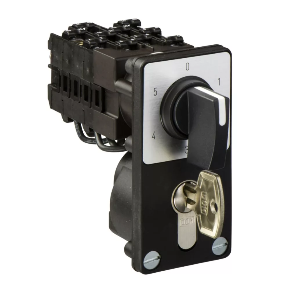 Schneider Electric Harmony K - K1K015NZ4 - comutator complet, 12 A, montare cu 6 șuruburi, acționat cu cheie, 3P, comutator cu 5 poziții + 0 trepte