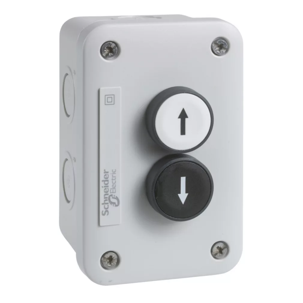 1 buton apăsat, alb, cu revenire prin arc, 1 NO, marcaj negru cu săgeată în sus