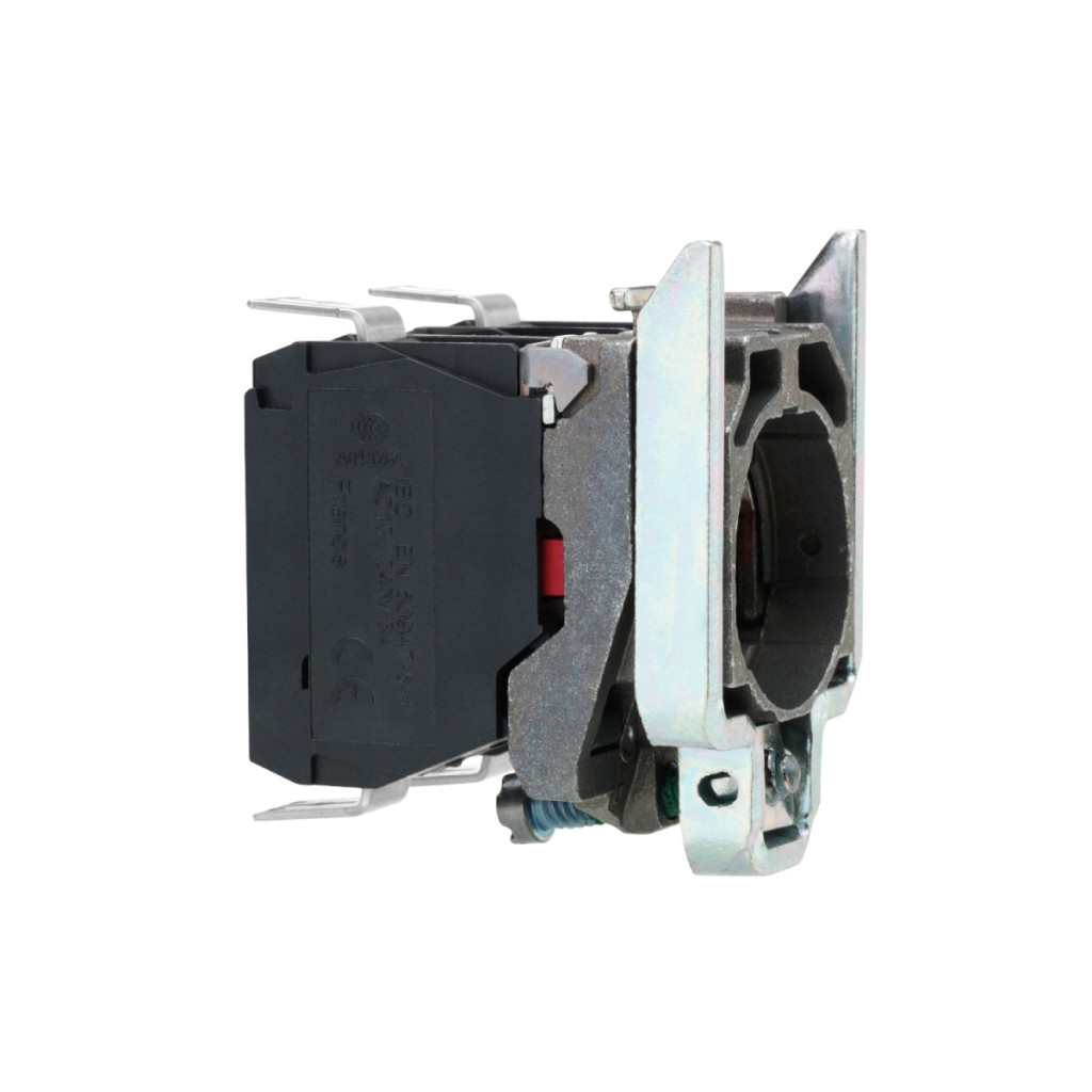 Bloc de contact simplu cu soclu/colier de montare 1NO Conector Faston. Familia de produse: Harmony XB4 - Tipul produsului sau componentului: ansamblu complet corp/contact - Denumire scurtă a dispozitivului: ZB4 - Material flanșă de montare: zamak - Tip cap: standard - Tip și compoziție contact: 1 NO - Funcționare contact: întrerupere lentă - tip bloc de contact: simplu - compoziție dispozitiv: inel de fixare, corp - tip conexiune: conector Faston (1 x 6,35 mm), conector Faston (2 x 2,8 mm). Avantaje: - Performanță ridicată chiar și în cele mai solicitante medii, Flexibilitate și adaptabilitate datorită designului modular, Instalare simplă și rapidă, Gama largă de soluții pentru toate aplicațiile, Design atractiv, completat de un kit de montare încastrat. Aplicații: ofertă universală pentru toate segmentele și aplicațiile din industrie, mașini și panouri de control în ambalare, manipularea și prelucrarea materialelor, pompare etc. Ideal pentru condiții de mediu extreme: industria alimentară, industria auto, utilizare în exterior (de exemplu, minerit, tratarea apei etc.). Clădiri și infrastructură, dulapuri de distribuție a energiei electrice, utilități publice, restaurante, clădiri comerciale, aeroporturi etc.