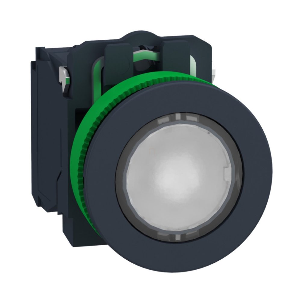 Schneider Electric Harmony XB5 - XB5FWCUST01 - buton apăsat din plastic încastrat cu cap iluminat, Ø30, 1NO, 24V, alb