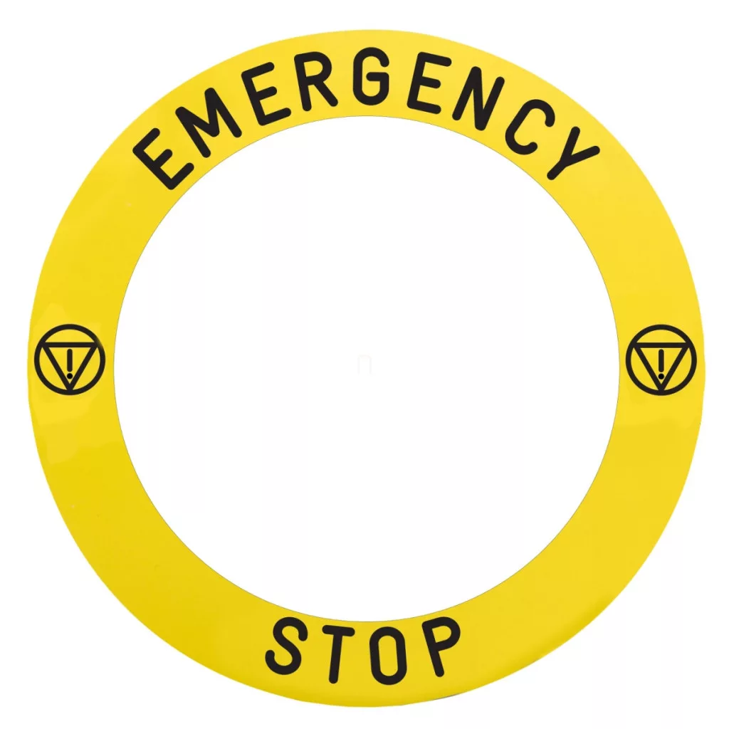 Marcaj: EMERGENCY STOP negru pe fond galben