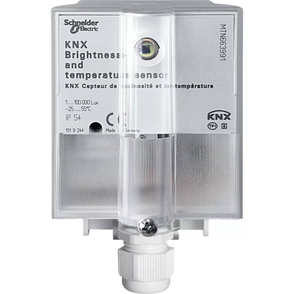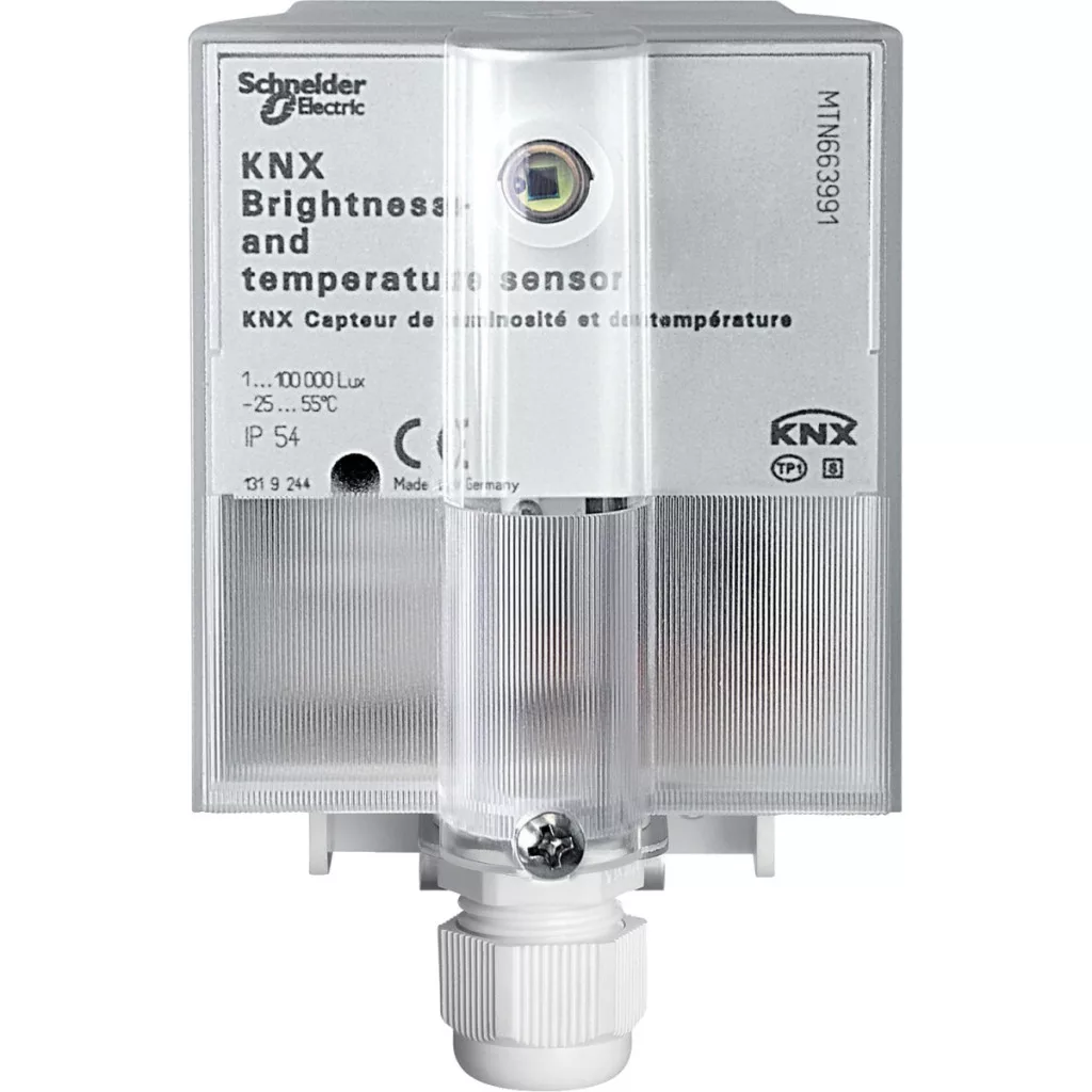 Senzor de iluminare și temperatură KNX, IP54. Familie de produse: KNX - tip produs sau componentă: senzor de lumină și temperatură - tip bus: KNX - funcție disponibilă: unitate de conectare la șină încorporată - nuanță de culoare: gri deschis - cod culoare: RAL 7035. Avantaje: - Siguranță, confort, economisire de energie, flexibilitate, Extensibilitate, Monitorizare la distanță. Aplicații: Poate fi utilizat în orice clădire în care este necesară funcționarea inteligentă a dispozitivelor conectate la rețeaua electrică: de la iluminat, încălzire și controlul climatizării până la camere de supraveghere și aparate electrocasnice inteligente....