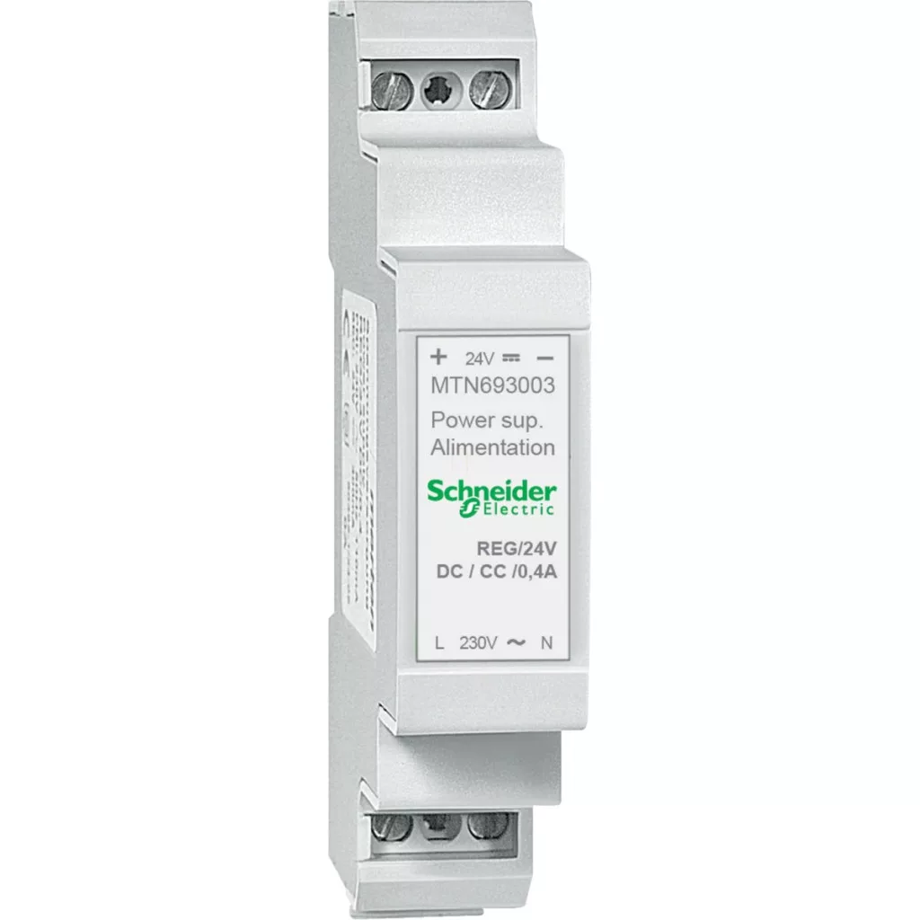 Unitatea de alimentare MTN693003 din gama de produse SpaceLogic KNX de la Schneider Electric este alegerea ideală pentru sistemele de automatizare KNX care necesită o sursă de alimentare fiabilă și stabilă de 24 V c.c. Această unitate de alimentare profesională a fost special concepută pentru rețelele KNX și se integrează perfect în soluțiile moderne de automatizare a clădirilor. Unitatea de alimentare MTN693003 are culoarea gri deschis și un design compact, cu o lățime de numai 1 modul DIN (17,5 mm), ocupând astfel un spațiu minim în dulapul de comutație. Dispozitivul furnizează o tensiune de ieșire stabilizată de 24 V CC cu un curent de 0,4 A și funcționează la o putere de 9,6 W. Dispozitivul are un grad de protecție IP20, fiind potrivit pentru aplicații tipice în interior. Produsul poate fi montat pe o șină DIN, iar dimensiunile sale sunt ideale pentru instalarea în dulapuri de comutație standard: 68,1 mm înălțime, 17,5 mm lățime și 68,1 mm adâncime. Sursa de alimentare MTN693003 este echipată cu terminale cu șurub, care asigură o conexiune electrică fiabilă și durabilă. Dispozitivul oferă o tensiune de ieșire stabilizată, ceea ce este deosebit de important pentru dispozitivele KNX sensibile, unde fluctuațiile de tensiune pot cauza probleme. Sursa de alimentare SpaceLogic KNX este proiectată pentru a oferi performanțe optime atunci când este utilizată cu alte dispozitive KNX, fie că sunt senzori, actuatoare sau alte componente KNX. Sursa de alimentare Schneider Electric MTN693003 este alegerea ideală pentru proiectele KNX de dimensiuni mici și medii, în care o sursă de alimentare de 0,4 A este suficientă pentru a alimenta dispozitivele conectate. Produsul este conceput pentru utilizare profesională de către specialiști în automatizarea clădirilor, electricieni și integratori de sisteme care caută o sursă de alimentare fiabilă și compactă pentru sistemele KNX. Ca parte a familiei de produse SpaceLogic KNX, se potrivește perfect cu alte componente KNX Schneider Electric, oferind o soluție completă pentru case și clădiri inteligente.