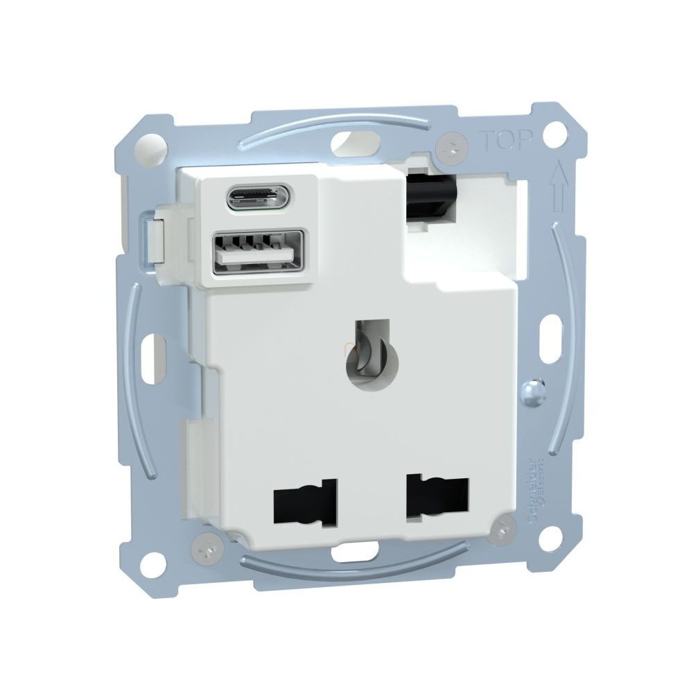 Schneider Electric Merten - MTN2175-0000 - Priză multistandard 2P+F, cu obturator de siguranță, încărcător USB A+C, comutator, tip șurub, 13A / 3A