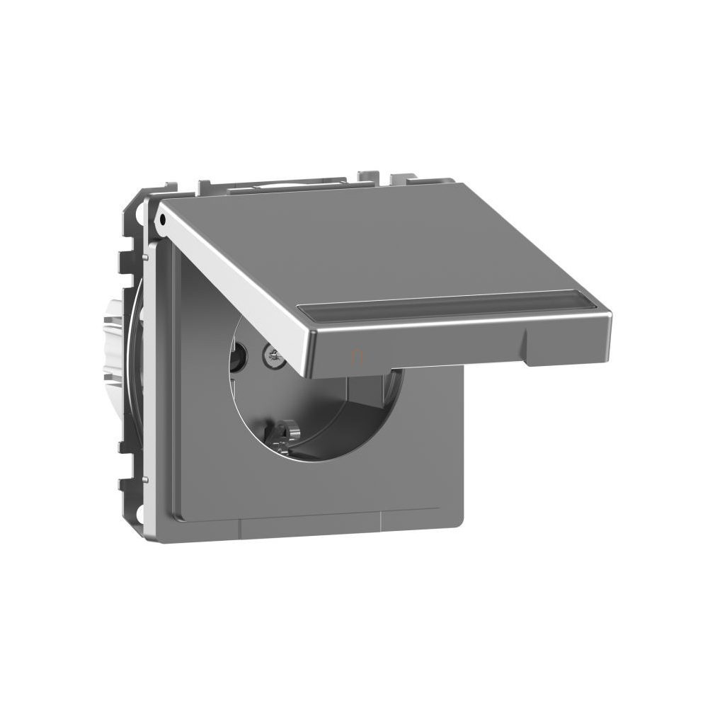 Priză MERTEN 2P+F, cu obturator de siguranță, capac cu fixare prin clip, etichetabil, cu arc, 16 A, sistem D, oțel MEG2312-6036 Schneider