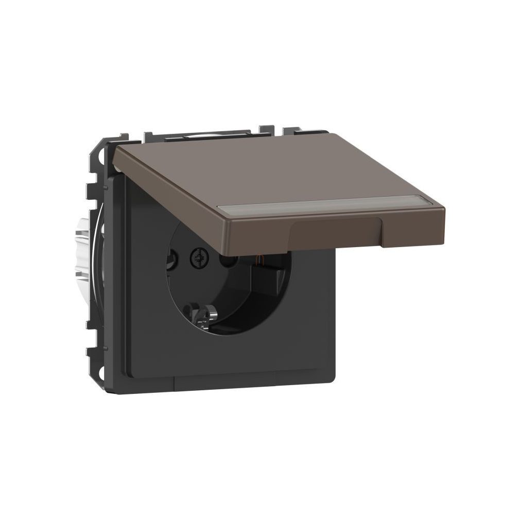 Priză MERTEN 2P+F, cu obturator de siguranță, capac cu fixare prin clip, etichetabil, cu arc, 16 A, Sistem D, mocha MEG2312-6052 Schneider