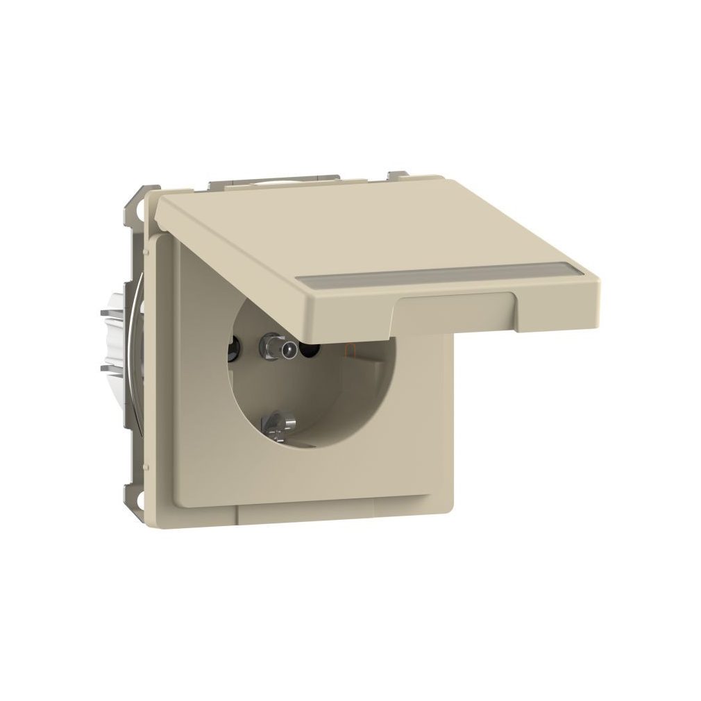 Priză MERTEN 2P+F, cu obturator de siguranță, capac cu fixare prin clip, etichetabil, cu arc, 16 A, Sistem D, Sahara MTN2312-6033 Schneider