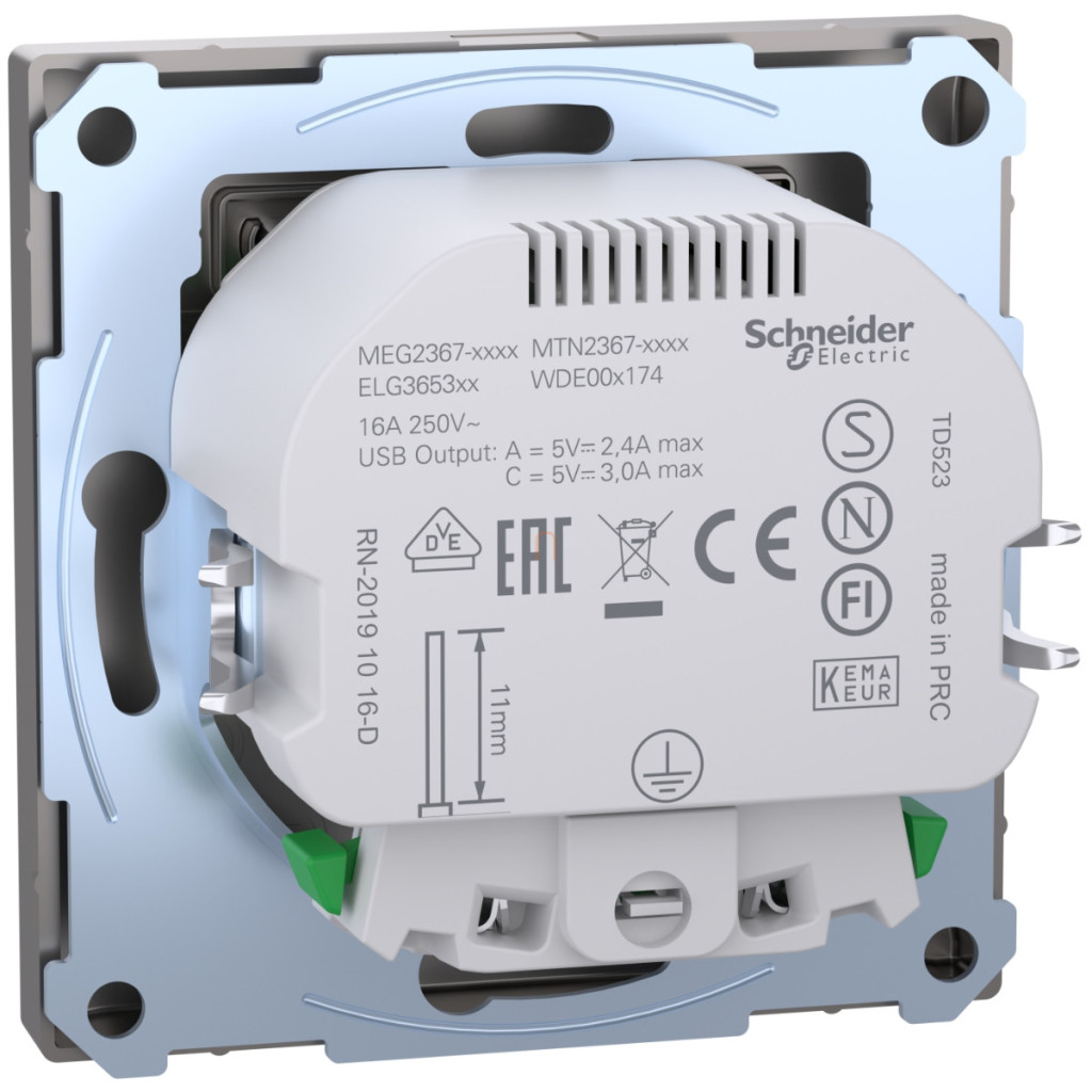 Schneider Electric Merten System Design - priză MEG2367-6050, cu obturator de siguranță, încărcător USB A+C, cu arc, 16 A / 3 A, nichel