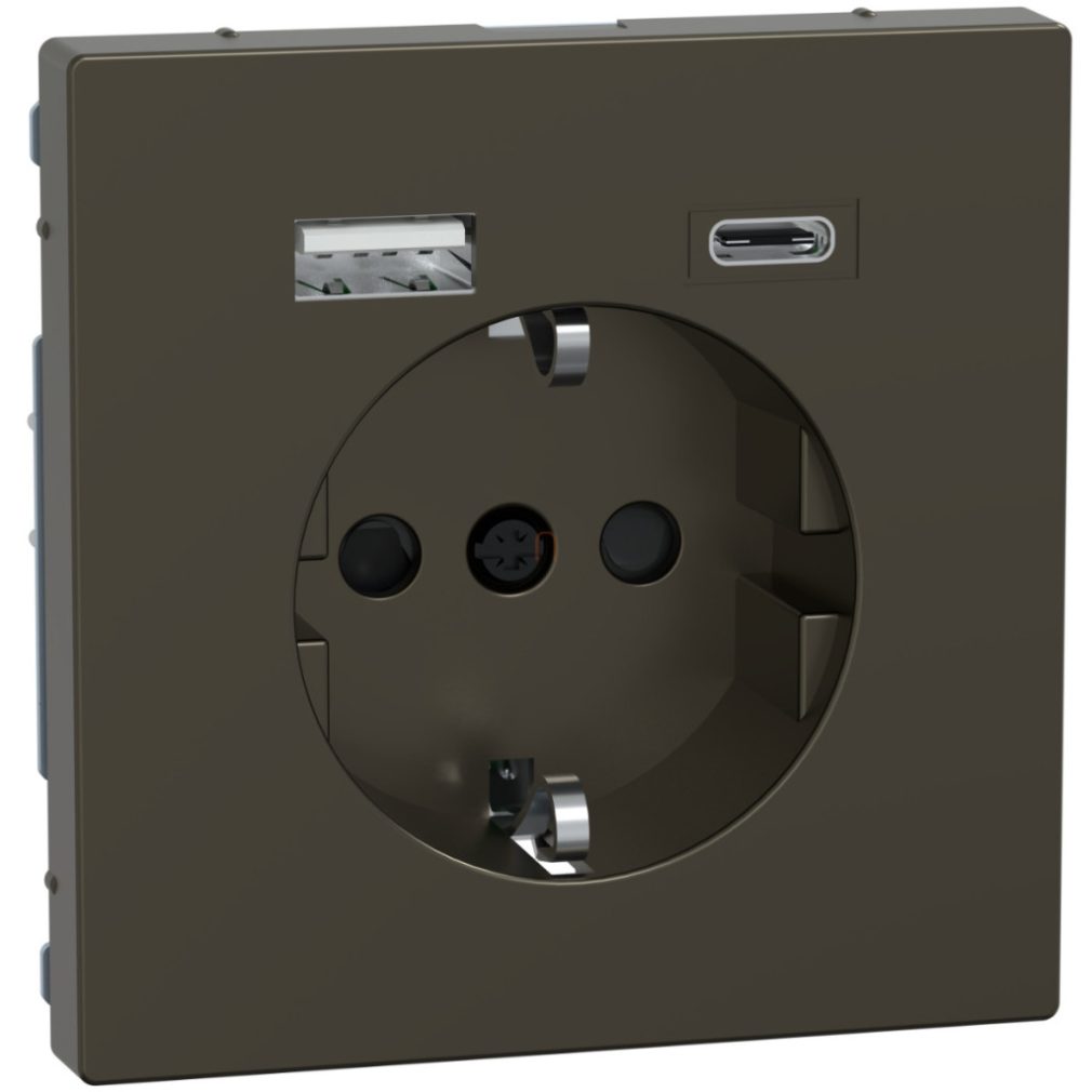 Priză MERTEN 2P+F, cu obturator de siguranță, încărcător USB A+C, cu arc, 16A / 3A, System-D, mocha MEG2367-6052 Schneider