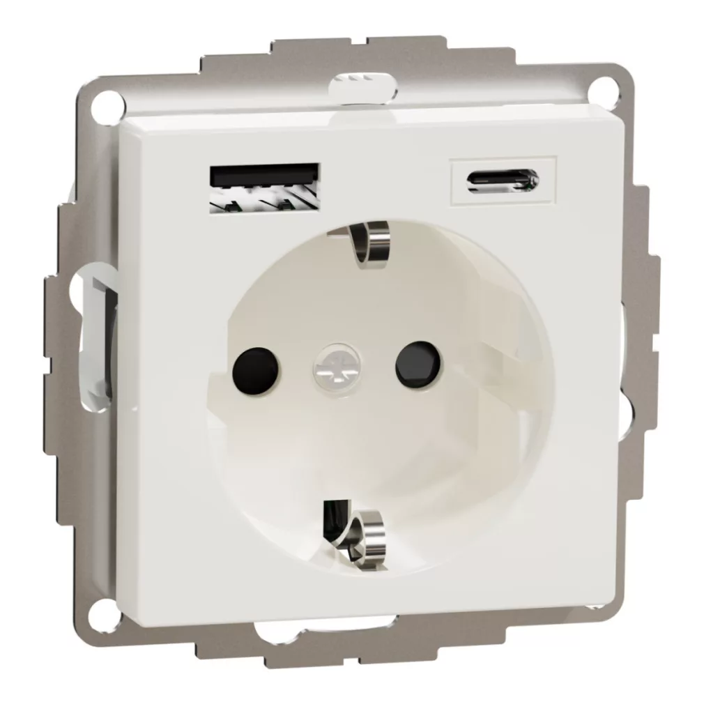 Schneider Electric Merten System-M - MTN2367-0319 - priză 2P+F, cu obturator de siguranță, încărcător USB A+C, cu arc, 16A / 3A, System-M, alb polar