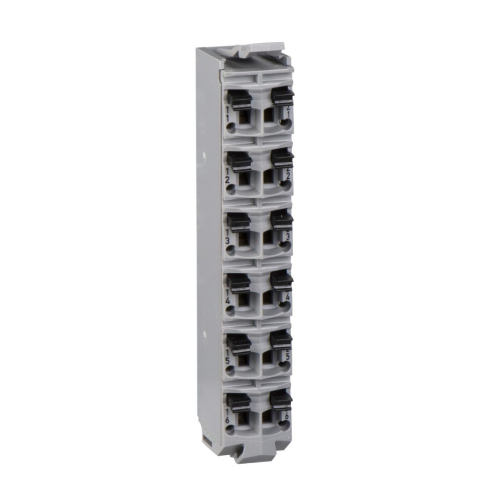 TM5ACTB12PS, parte a familiei de produse Modicon TM5, este un bloc terminal cu 12 contacte, de culoare gri. Acest produs este un accesoriu/componentă autonomă din categoria accesoriilor de conectare, compatibil în principal cu modulele de distribuție a energiei și modulele de recepție la distanță.