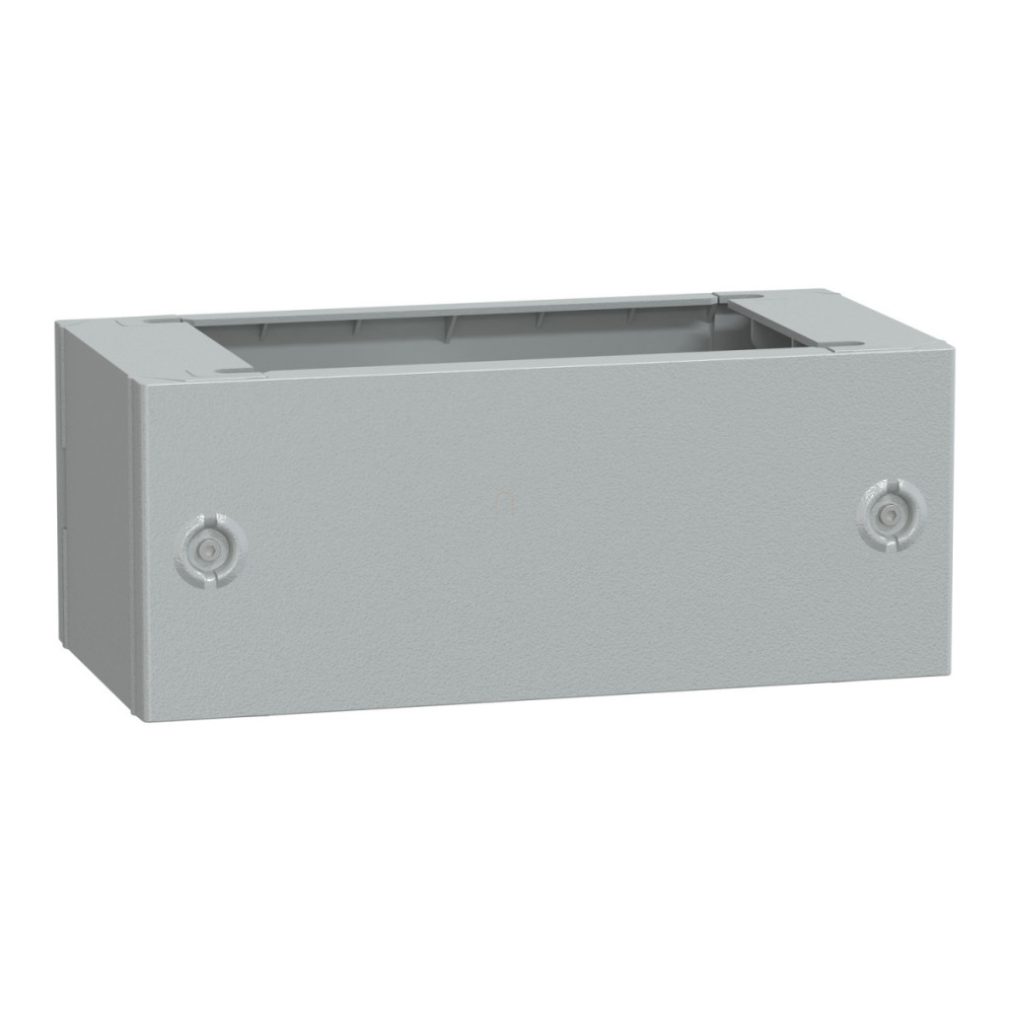 Baza NSYZA253G are capacități de protecție remarcabile, dovadă fiind protecția IP44 și rezistența la impact IK10. Gradul de protecție IP44 oferă o protecție eficientă împotriva obiectelor solide mai mari de 1 mm și a stropilor de apă, în timp ce gradul IK10 garantează cea mai înaltă rezistență la impact mecanic, esențială în mediile industriale. Produsul are o înălțime de 200 mm, o lățime de 494 mm și o adâncime de 250 mm, oferind o bază ideală pentru dulapurile din seria PanelSeT PLA. Baza se instalează rapid și ușor cu ajutorul șuruburilor în pozițiile corespunzătoare de pe panourile laterale. Produsul include elementele de fixare necesare, 2 panouri frontale și 2 panouri laterale, asigurând o potrivire perfectă și stabilitate. Materialul armat cu fibră de sticlă poliesterică oferă o rezistență excelentă la intemperii și coroziune, ceea ce este deosebit de important pentru mediile industriale agresive sau în aer liber. Această durabilitate și rezistență prelungesc semnificativ durata de viață atât a produsului, cât și a carcasei amplasate pe acesta.