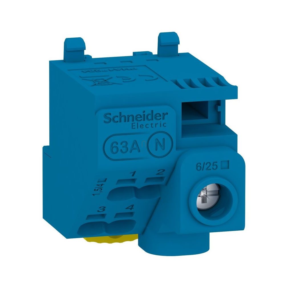 Schneider Electric Resi9 - LGYT1N05 - Bloc de conectare, 1 x 6/25 (șurub) + 4 x 1,5/4 (conectare rapidă) (63 A) + jumper