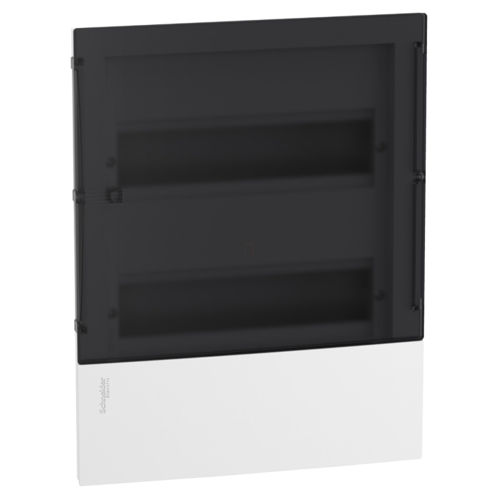 Schneider Electric RESI9 Mini Pragma - MIP22212S - Tablou de distribuție mic, ușă transparentă de culoare fumurie, încastrat, 2x12 module, șină PEN, complet, alb date tehnice