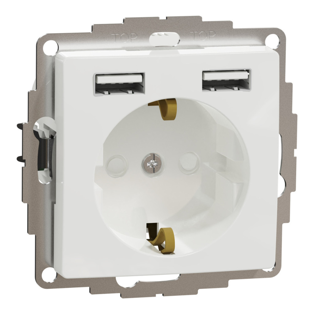 Această priză elegantă, albă lucioasă, este un element versatil și practic al gamei de produse premium Sedna Design și Elements de la Schneider Electric, combinând o conexiune tradițională la rețeaua electrică 2P+F cu două porturi USB de încărcare. Conexiunea laterală la pământ, în conformitate cu standardul CEE 7/3, asigură o compatibilitate largă cu rețelele electrice europene. Obturatorul de siguranță încorporat oferă o protecție fiabilă împotriva contactului accidental, ceea ce face ca produsul să fie recomandat în special pentru locuințele cu copii mici și spațiile publice. Cele două porturi USB 2.0 de tip A furnizează o tensiune de 5 V CC și un curent total de ieșire de 2,4 A, permițând încărcarea simultană a două dispozitive fără adaptor, ceea ce este ideal pentru smartphone-uri, tablete și alte dispozitive USB. Sistemul său de conectare cu arc asigură o instalare rapidă și sigură și este compatibil cu cabluri răsucite rigide sau flexibile cu o secțiune transversală de 1,5-2,5 mm² și o lungime a cablului de 13 mm. Cu un curent nominal de 16 A și o toleranță de tensiune de 250 V c.a., majoritatea aparatelor de uz casnic și de birou pot fi utilizate în siguranță, în timp ce încărcarea USB poate fi utilizată în paralel. Suprafața este realizată din policarbonat lucios, netratat, care oferă un aspect elegant și durabilitate, în timp ce nuanța albă RAL 9003 se potrivește perfect în orice interior. Priză este potrivită pentru montare încastrată sau pe suprafață și poate fi fixată cu șuruburi sau cleme de 45-56 mm. Dimensiunile sale compacte de 71x71 mm, adâncimea vizibilă de 32 mm și adâncimea totală de 44 mm asigură un aspect discret și armonios, care nu întrerupe planul peretelui. Clasa de rezistență la impact IK03 și protecția IP20 o fac potrivită pentru utilizarea pe termen lung în interior. Este alegerea ideală pentru sufragerii, dormitoare, birouri, săli de ședințe sau orice încăpere în care este important să se combine caracteristicile moderne și siguranța. Nu este recomandat pentru utilizarea în exterior sau în medii umede, deoarece nivelul său de protecție nu este conceput pentru aceste condiții. Modelul Sedna Design SDD111052 oferă inovația, calitatea premium și designul practic ale Schneider Electric, facilitând viața de zi cu zi cu opțiuni de încărcare rapide și convenabile.