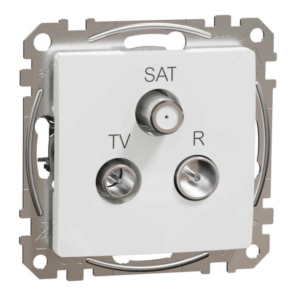 Această priză TV/R/SAT din seria Sedna Design de la Schneider Electric oferă o soluție fiabilă și estetică pentru cei care doresc să asigure recepția și transmisia simultană a semnalelor de televiziune, radio și satelit în mediul lor domestic sau profesional. Designul său de tip pass-through permite transmiterea semnalului către alte puncte de recepție, făcând din acest produs alegerea perfectă pentru sistemele în lanț, unde sunt necesare mai multe puncte de conectare. Suprafața albă, lucioasă (RAL 9003) oferă un aspect clasic, curat, care se potrivește perfect în interioare luminoase și ordonate. Părțile vizibile sunt fabricate din plastic ABS termoplastic stabilizat la UV, astfel încât își păstrează culoarea și strălucirea originale chiar și în încăperile expuse la lumina soarelui. Trei conectori separați – TV (IEC 9,52 mm mascul), radio (IEC feminin) și SAT (IEC feminin) – permit conectarea diferitelor dispozitive media printr-o singură priză. Valorile de atenuare încorporate sunt ajustate la diferite benzi de frecvență: 7 dB în banda de televiziune (47–2200 MHz), 10 dB în banda de radio (88–125 MHz) și doar 3 dB în banda de satelit (950–2400 MHz), asigurând niveluri optime ale semnalului și o funcționare stabilă la toate punctele de conectare. Conexiunile se realizează cu terminale cu șurub, care oferă o soluție durabilă, sigură din punct de vedere al contactului și ușor de instalat. Designul încastrat al prizei se integrează armonios în suprafața peretelui, în timp ce proeminența vizibilă de 17,4 mm îi conferă un aspect elegant și discret. Produsul măsoară 73×73 mm, cu o adâncime de 41 mm și o adâncime de încastrare de 22,5 mm, ceea ce îl face perfect compatibil cu cutiile de montare standard. Opțiunile de montare includ montarea cu șuruburi și montarea cu cleme reglabile între 55 și 70 mm, permițând adaptarea la o varietate de tipuri de pereți. Gradul de protecție IP20 al prizei înseamnă că poate fi utilizată în interior, în medii uscate, în timp ce rezistența la impact IK03 oferă o protecție adecvată împotriva impacturilor mecanice minore în timpul utilizării zilnice. Marcajul de conformitate CE garantează că produsul respectă cerințele de siguranță și funcționare ale Uniunii Europene. În plus, priza respectă și directivele de mediu RoHS și REACh ale UE. Acest model din seria Sedna Design face parte din inițiativele de sustenabilitate ale Schneider Electric, care vizează reducerea amprentei ecologice și prelungirea duratei de viață a produselor sale. Părțile vizibile sunt fabricate din 46% plastic reciclat, iar ambalajul este fabricat din carton reciclat, contribuind la utilizarea responsabilă a produsului. Programul producătorului „Use Better, Use Longer, Use Again” (Folosește mai bine, folosește mai mult, folosește din nou) susține, de asemenea, schimburile și reambalarea. Această priză TV/R/SAT cu trecere este recomandată pentru orice utilizator care caută o soluție estetică, fiabilă și ecologică pentru utilizarea combinată a mediilor, chiar și pentru mai multe puncte de recepție. Nu este recomandată pentru utilizare ca punct final, deoarece acest lucru necesită o priză separată pentru punctul final. Acest produs alb din seria Sedna Design oferă excelență tehnică, armonie vizuală și o soluție durabilă pentru conexiunile media de acasă și profesionale.