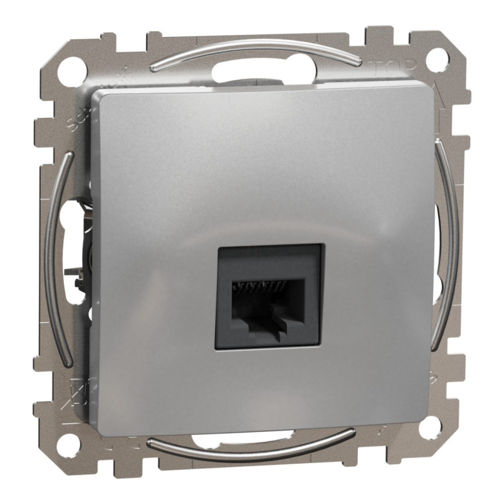 Conectorul de date Schneider Electric Sedna Design, de culoare aluminiu, 1xRJ45 Cat6 UTP, oferă o soluție elegantă și fiabilă pentru rețelele de date de mare viteză, fie acasă, la birou sau într-un mediu comercial. Suprafața vopsită mată, de culoare aluminiu RAL 7047, oferă un aspect modern și curat, care se integrează ușor în interioarele contemporane, rezistând în același timp la zgârieturi și uzura din utilizarea zilnică. Materialul ABS termoplastic, stabilizat la UV, garantează o durată lungă de viață și este rezistent la decolorarea cauzată de lumina soarelui, asigurând că produsul își păstrează valoarea estetică în timp. Standardul RJ45 8 pini Cat6 oferă o lățime de bandă de 250 MHz, ideală pentru rețele gigabit, telefonie IP, videoconferințe și aplicații multimedia cu trafic intens. Designul UTP (pereche torsadată neecranată) permite o instalare ușoară și o transmisie stabilă a datelor pe cabluri de lungime scurtă și medie, în timp ce blocurile terminale de tip IDC sunt special concepute pentru cabluri rigide, asigurând un contact sigur și de lungă durată. Designul încastrat de 73×73 mm, cu o adâncime vizibilă de 13 mm, se integrează discret în suprafața peretelui și poate fi instalat cu șuruburi sau cleme (în intervalul 51-80 mm). Protecția IP20 este optimizată pentru utilizarea în interior, protejând împotriva pătrunderii obiectelor solide mai mari de 12,5 mm, în timp ce nivelul de rezistență la impact IK03 oferă securitate mecanică de bază. De asemenea, este remarcabil din punct de vedere al durabilității, deoarece este livrat în ambalaje din carton reciclat, respectă reglementările UE RoHS și REACh și este returnabil și reciclabil. Nu este recomandat pentru utilizare în medii umede, prăfuite sau în aer liber. Acest conector de date Cat6 UTP de culoare aluminiu este alegerea ideală pentru cei care apreciază designul modern, performanța fiabilă a rețelei și durata lungă de viață.