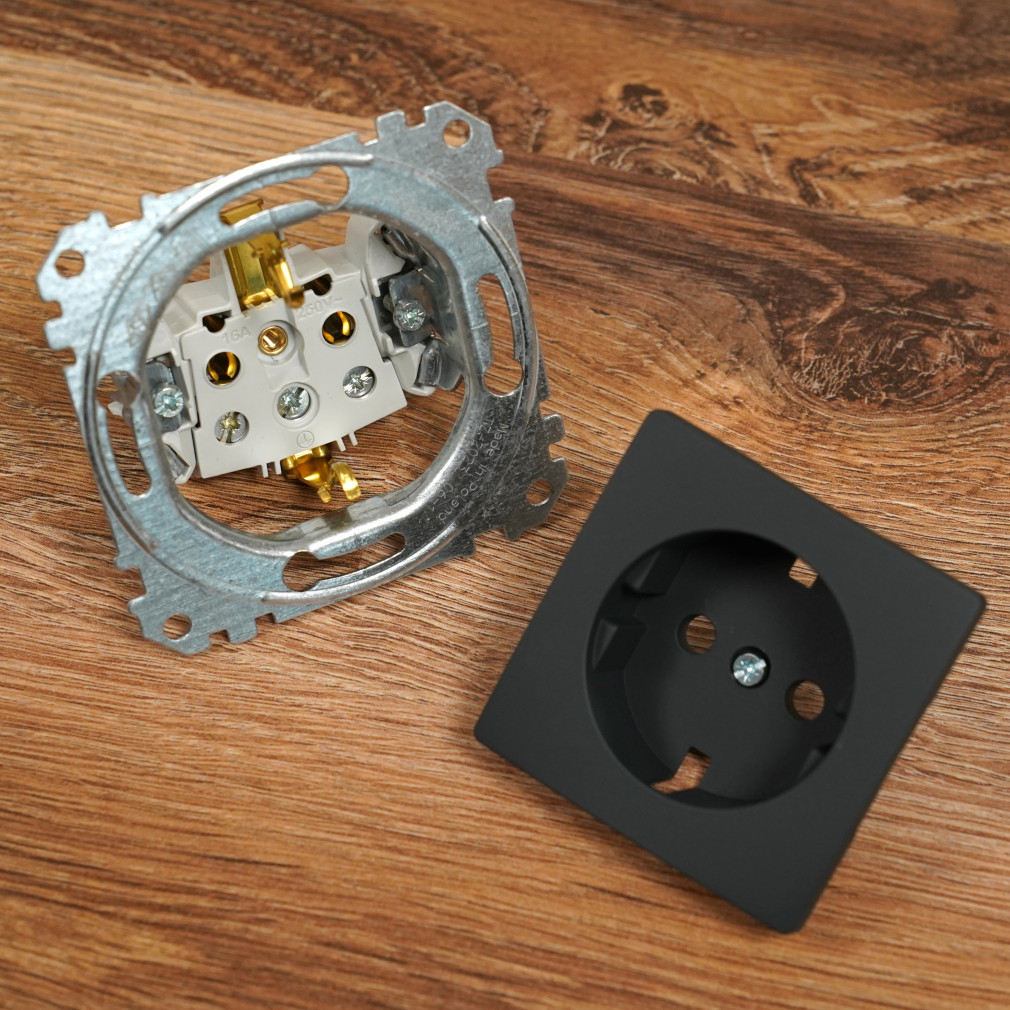 Această priză elegantă, de culoare antracit, face parte din gama de produse premium Sedna Design și Elements de la Schneider Electric, care combină stilul modern cu performanțe tehnice fiabile. Designul 2P+E (două poli + împământare) are o conexiune laterală la împământare în conformitate cu standardul CEE 7/3, fiind astfel complet compatibilă cu majoritatea rețelelor electrice europene. Curentul nominal de 16 A și toleranța la tensiune de 250 V c.a. permit utilizarea în siguranță a majorității aparatelor de uz casnic și de birou. Sistemul de conectare cu șurub asigură o conexiune solidă și sigură și este potrivit pentru cabluri rigide sau flexibile răsucite, cu o secțiune transversală de 1,5-2,5 mm² și o lungime a cablului de 13 mm. Priză, care este potrivită pentru montare încastrată și pe suprafață, poate fi fixată cu șuruburi sau cleme într-un interval de 52–69 mm. Suprafața sa mată, vopsită din policarbonat, îi conferă un aspect elegant, rezistând în același timp la utilizarea zilnică. Dimensiunile sale compacte (73x73 mm), adâncimea vizibilă de 32 mm și adâncimea totală de 41 mm permit o instalare discretă și armonioasă. Clasa de rezistență la impact IK03 garantează durabilitate mecanică pe termen lung, în timp ce clasa de protecție IP20 o face ideală pentru utilizare în interior, oferind protecție de bază împotriva pătrunderii obiectelor solide. Acest model este proiectat fără obturator de siguranță, fiind potrivit pentru încăperi în care nu este necesară protecția copiilor, cum ar fi birouri, magazine sau ateliere. Nu este recomandat pentru mediile exterioare sau umede, deoarece nivelul său de protecție nu este proiectat pentru aceste condiții. Sedna Design SDD114025 este alegerea ideală pentru oricine caută o priză estetică și fiabilă, care se potrivește într-un interior modern și oferă o conexiune electrică sigură și stabilă pentru mulți ani de acum înainte.