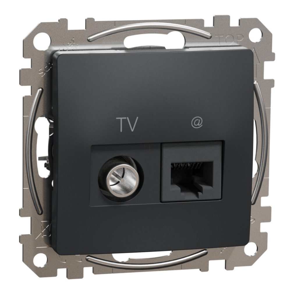 Parte a seriei Sedna Design de la Schneider Electric, această priză combinată pentru televizor și RJ45 este o alegere excelentă pentru orice locuință sau birou modern, unde este importantă integrarea conexiunilor pentru televizor și date într-un singur punct estetic. Această soluție de calitate superioară permite recepția televiziunii și conectivitatea la internet să fie disponibile simultan, independent una de cealaltă, dar într-un mod care economisește spațiu. Dispozitivul are o suprafață mată, de culoare antracit, codificată RAL 7021, care îi conferă un aspect elegant și modern și se potrivește perfect în interioarele contemporane, în tonuri mai închise. Suprafețele vizibile sunt realizate din material ABS termoplastic, stabilizat la UV, care garantează rezistența pe termen lung a culorii și rezistența la influențele mediului. Conectorul TV are un design coaxial de tip „father” în formă de stea, care funcționează în gama de frecvențe 5-2200 MHz cu o atenuare de 4 dB, asigurând o recepție clară și fiabilă a semnalului. Priză RJ45 este de tip UTP, categoria Cat6, cu o lățime de bandă de 250 MHz, permițând o conexiune de date rapidă, stabilă și fiabilă la majoritatea rețelelor domestice sau corporative. Conexiunea se realizează folosind tehnologia IDC, care asigură o conexiune rapidă și durabilă, fără unelte, deosebit de avantajoasă pentru proiecte mai mari și instalații profesionale. Mecanismul încastrat este prevăzut cu un cadru de montare care garantează o montare stabilă și estetică pe perete. Dispozitivul are o lățime și o înălțime de 73 mm și o adâncime de 37 mm și este compatibil cu cutii de montare de dimensiuni standard. Este fixat cu șuruburi, ceea ce asigură o instalare sigură și fiabilă. Gradul de protecție IP20 îl face potrivit pentru utilizarea în medii interioare, uscate, cu o temperatură de funcționare cuprinsă între -25 și +55 °C, satisfăcând astfel nevoile majorității mediilor rezidențiale și de birou. Acest model din seria Sedna este conform cu ISO 8877, are marcajul CE și respectă, de asemenea, directivele UE RoHS și REACh. Având în vedere sustenabilitatea, produsul este livrat într-un ambalaj din carton reciclat și susține programul Schneider Electric „Use Better, Use Longer, Use Again” (Folosește mai bine, folosește mai mult timp, folosește din nou), care se concentrează pe prelungirea duratei de viață și reciclabilitatea produselor. Reambalarea, returnarea și conformitatea cu WEEE asigură că produsul poate fi eliminat într-un mod ecologic la sfârșitul ciclului său de viață. Această priză combinată TV și RJ45 Cat6 este recomandată în special pentru încăperile în care furnizarea accesului la internet și a unei conexiuni TV într-un singur punct reprezintă un avantaj estetic și practic. Nu este recomandată pentru sistemele care utilizează cabluri de date ecranate, deoarece priza este de tip UTP (neecranată). Prizele Sedna Design antracit combină eleganța, funcționalitatea și designul ecologic, fiind alegerea ideală pentru cei care caută o soluție fără compromisuri pentru conexiunile lor de televiziune și rețea.