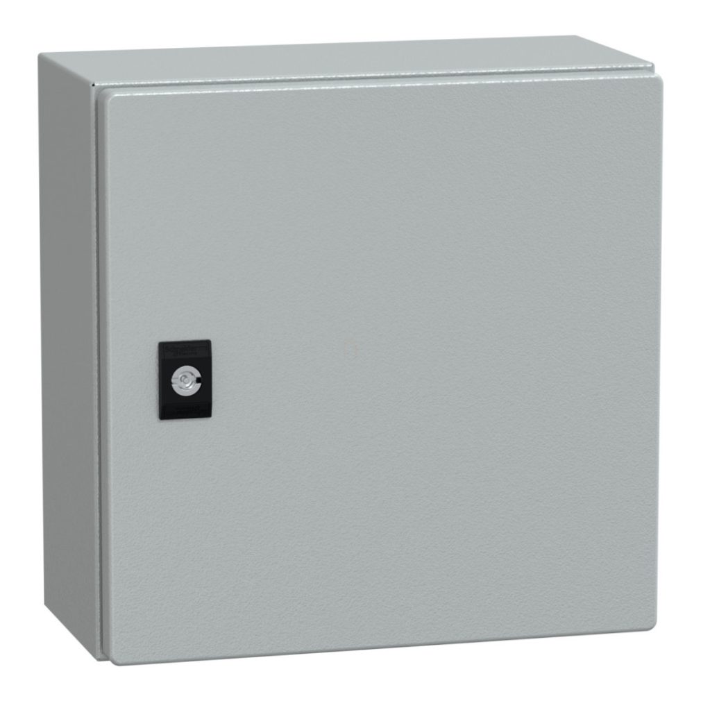 Dulap de distribuție cu ușă solidă (300*300*150). Familia de produse: Spațial - Aplicație dispozitiv: multifuncțional - Tip produs sau componentă: dulap compact - Înălțime nominală dulap: 300 mm - Lățime nominală dulap: 300 mm - Adâncime nominală dulap: 150 mm - Compoziție dispozitiv: ușă 1, corp 1, placă de etanșare 1, încuietoare 1 - descriere placă de montare: cu placă de montare. Avantaje: - Opțiuni: ușă solidă sau ușă vitrată. Economie de timp: 56 de dimensiuni (39 pentru CRN și 17 pentru CRNG) cu sau fără placă de montare solidă (CRNG pentru aplicații personalizate). Gama largă de accesorii pentru orice aplicație. Aplicații: - Automatizare industrială și control industrial. Placă de montare solidă, placă de montare microperforată, placă de montare perforată. Distribuție de energie. Șasiu modular (din oțel și izolat) pentru 24-234 module. Electronică și rețele industriale. Cadru fix sau oscilant de 19''.