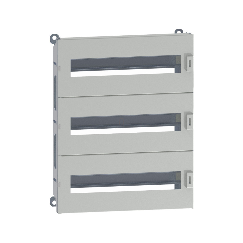 Schneider Electric NSYDLM48 este un kit de montare modular de tip DLM de calitate profesională, conceput special pentru dulapurile de comutație din seria PanelSeT WM cu dimensiunile H500xL400mm. Acest design cu 48 de module este ideal pentru echipamente de distribuție și panouri de control multifuncționale, unde fiabilitatea și dispunerea practică sunt importante. Produsul NSYDLM48 are o serie de caracteristici avantajoase care facilitează lucrările de instalare electrică. Cadrul din oțel oferă o bază robustă, în timp ce panourile frontale gri (RAL 7035) și acoperirea cu pulbere de poliester îi conferă un aspect profesional. Kitul include o structură completă a cadrului, 2 plăci de acoperire, 1 șină neutră/de împământare (cu opțiuni de conectare 2 x 16 mm² și 5 x 6 mm²) și 3 panouri frontale cu șine DIN de 35 mm. Această configurație permite amplasarea unui total de 48 de dispozitive modulare de 18 mm (întrerupătoare miniaturale, dispozitive de protecție împotriva supratensiunii, alte dispozitive modulare) în 3 rânduri orizontale. NSYDLM48 are un design bine gândit în ceea ce privește instalabilitatea. Înălțimea șinelor DIN poate fi reglată între 40 și 85 mm, ceea ce oferă un grad ridicat de flexibilitate pentru instalarea componentelor de diferite dimensiuni. Fixarea este simplă – se realizează cu elemente de fixare în partea din față și din spate a dulapului, cu ajutorul unor suporturi. Sistemul poate fi utilizat și cu panouri frontale plate și decupate, cu 3 decupaje pe panourile frontale. Produsul este compatibil și cu familiile de produse PanelSeT S3D și PanelSeT CRN, ceea ce oferă o versatilitate suplimentară. Dimensiunile exacte ale NSYDLM48 sunt: 453 mm înălțime, 355 mm lățime și 101,5 mm adâncime, ceea ce permite utilizarea eficientă a spațiului din interiorul dulapului de comutație, oferind în același timp spațiu suficient pentru cablare și disiparea căldurii.