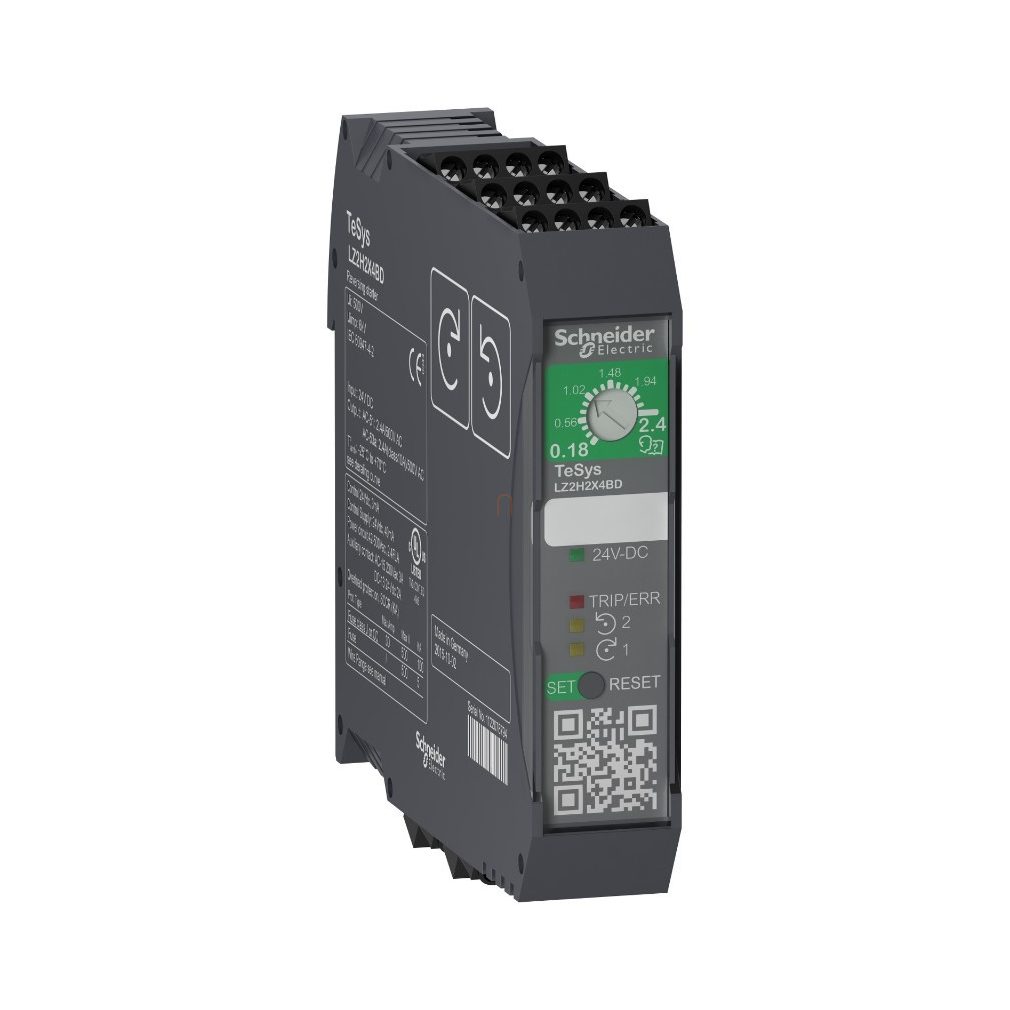 Controler motor cu comutator compact de sens de rotație TeSys H 3 kW 24 Vcc, tip șurub. Familie de produse: TeSys - denumirea produsului: TeSys H - denumirea scurtă a dispozitivului: LZ2H - tipul produsului sau al componentei: starter compact invers - desemnarea polilor: 3P - curent nominal de funcționare: 5 A -500 V AC-53A montare side-by-side, 6,5 A -500 V c.a.-53A, 7 A -500 V c.a.-51 montare în paralel, 9 A -500 V c.a.-51 - puterea motorului kW: 1,5 kW -220 V c.a. cu factor de putere: 0,65, 1,5 kW -230 V c.a. cu factor de putere: 0,65, 2,2 kW -380 V c.a. cu factor de putere: 0,65, 3 kW -400 V c.a. cu factor de putere: 0,65, 3 kW -415 V c.a. cu factor de putere: 0,65, 3 kW -440 V CA cu factor de putere: 0,65, 3 kW -500 V CA cu factor de putere: 0,65 - putere motor HP: 1 HP -200 V CA, 1,5 HP -230 V CA, 3 HP -460 V CA.