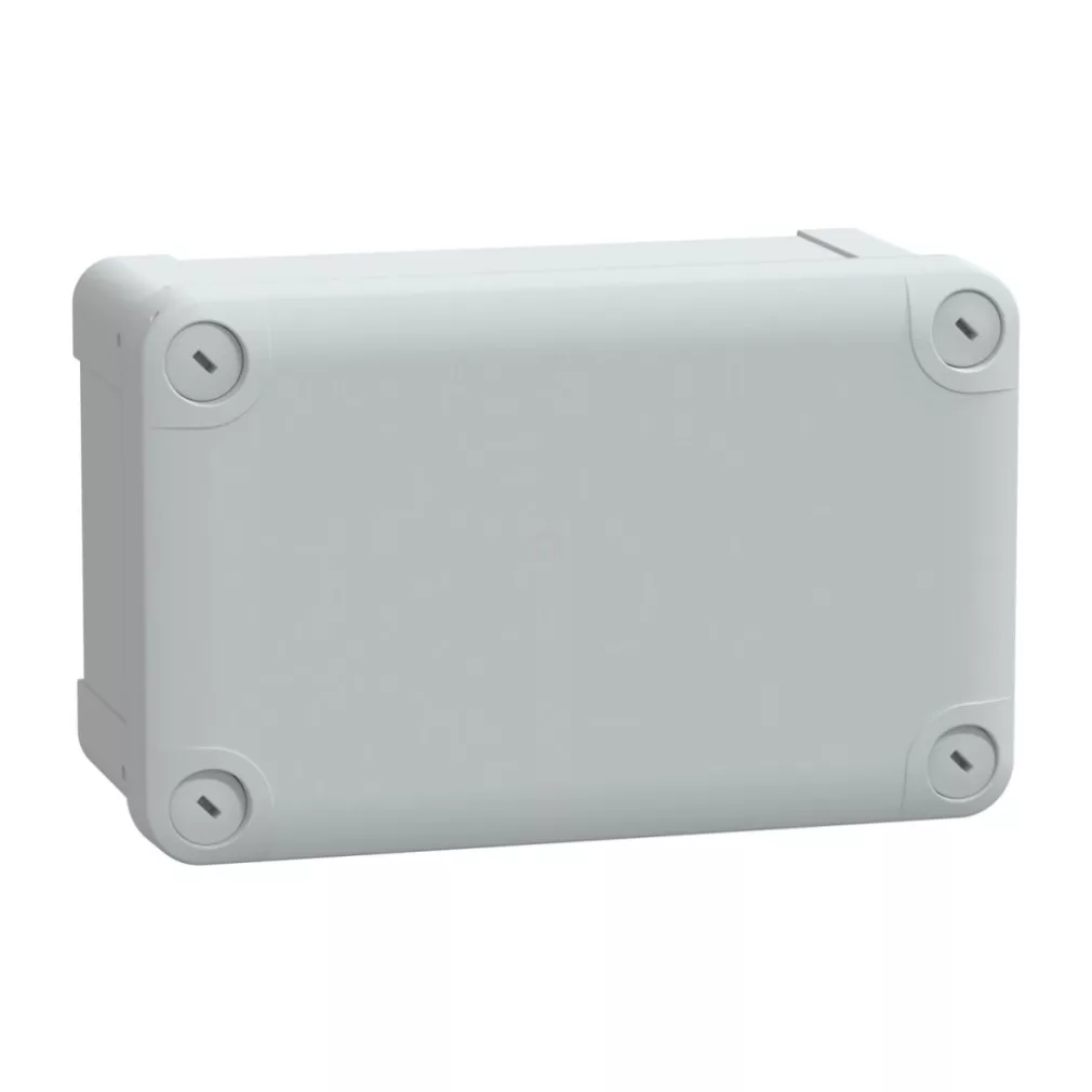 \nCutie industrială din plastic (192*121*87). Familia de produse: Thalassa - Denumirea produsului: Thalassa TBP - Aplicație dispozitiv: multifuncțional - Înălțime: 192 mm - Lățime: 121 mm - Adâncime: 87 mm - Înălțime internă: 175 mm - Lățime internă: 105 mm - Adâncime internă: 80 mm - Montare dulap: montare pe perete - Componența dispozitivului: 1 x capac, 1 x corp, 4 x șuruburi pentru capac - cantitate per set: set de 2 piese - tip corp: turnat dintr-o singură bucată - fixare capac: șuruburi din plastic. Avantaje: .. Aplicații: ..