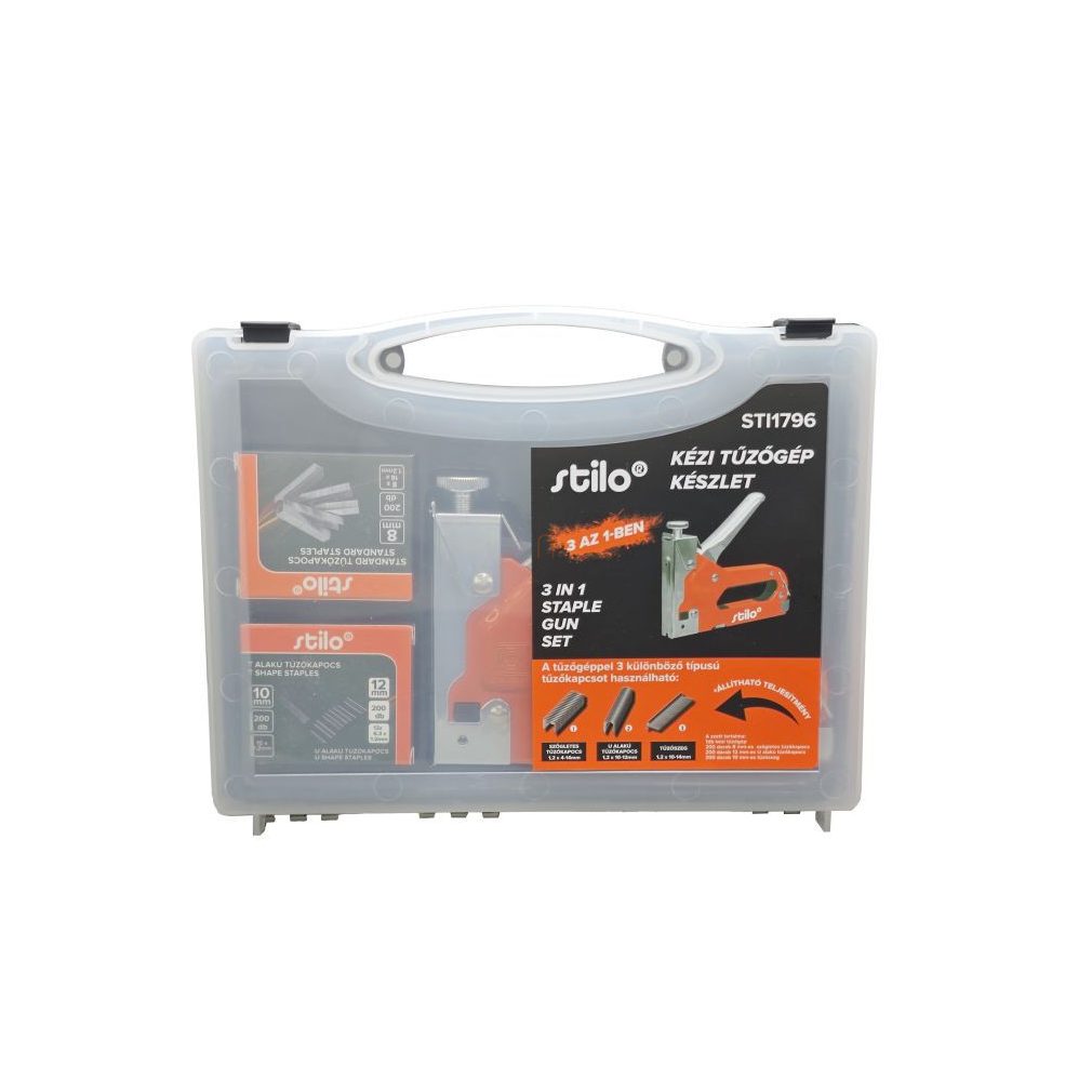 Set capsator Stilo, conținut: 1 capsator manual, 200 capse pătrate, 200 capse în formă de U, 200 capse în formă de T STI1796 - STI1796