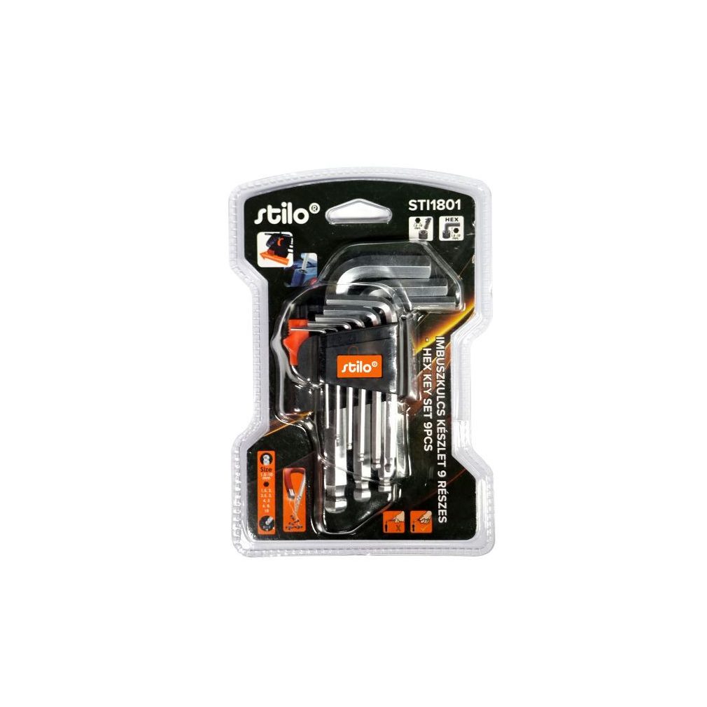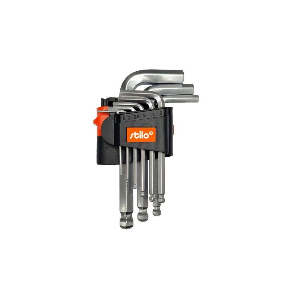Set chei Allen, tijă scurtă, 9 piese, cap sferic, magnetizate, Stilo STI1801