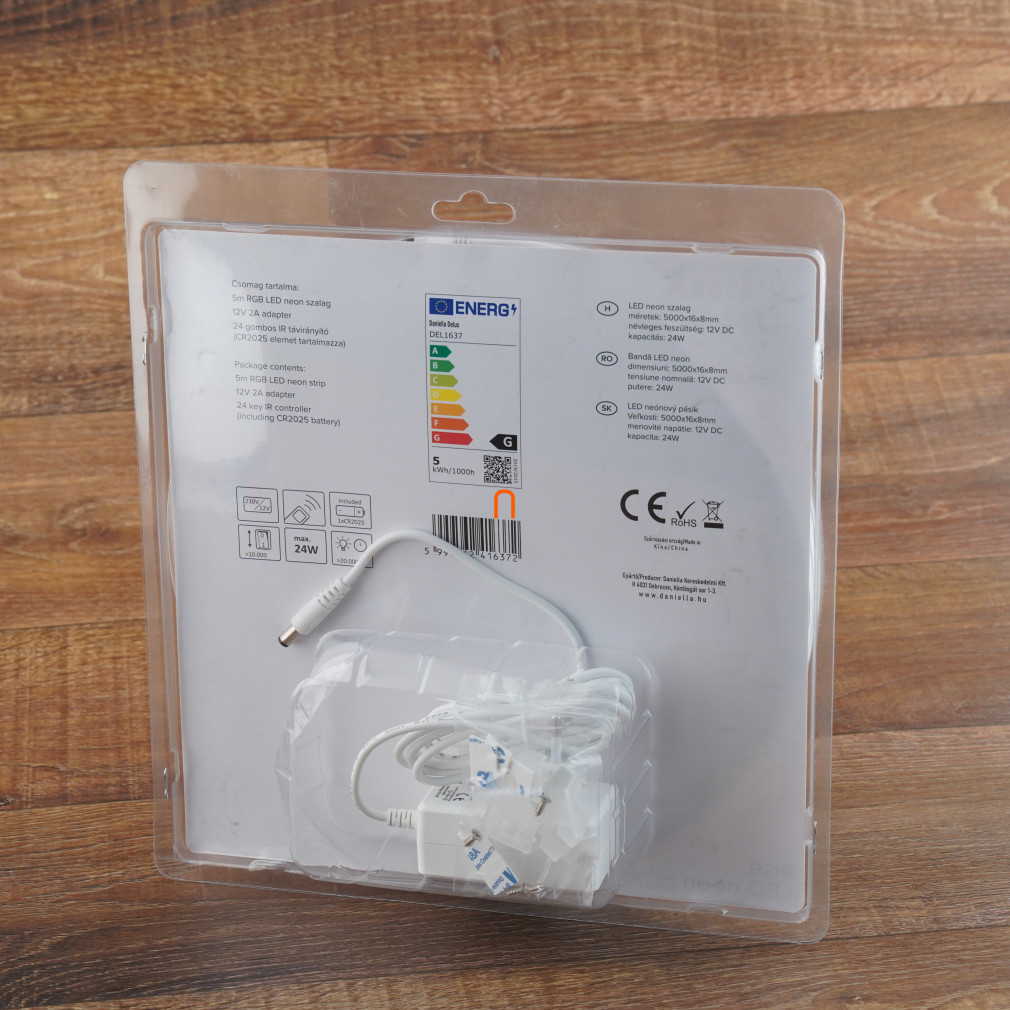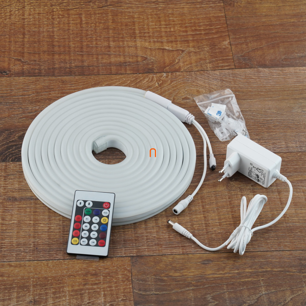 Set LED neon flex RGB cu telecomandă și unitate de alimentare 5 m IP65, 12 V CC 4,8 W/m 300 lm/m 120 LED/m SMD2835 deLux DEL1637